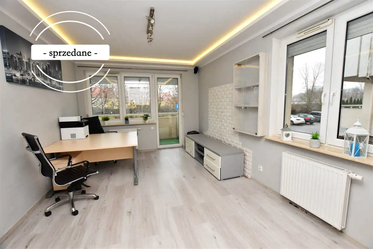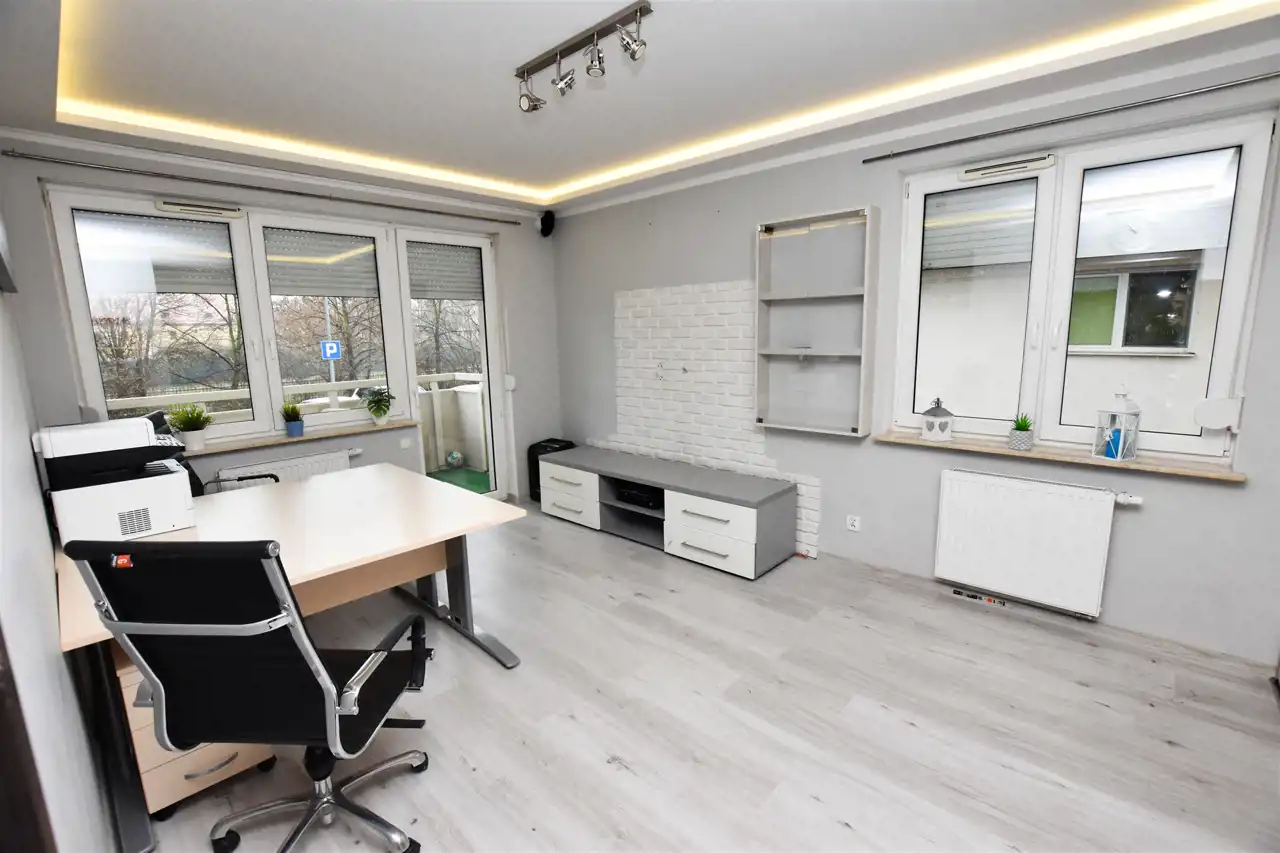 Nowoczesny standard wykończenia wnętrz, ustawne pokoje, funkcjonalna i przestronna łazienka, bardzo duży balkon, rolety zewnętrzne w oknach, winda w bloku, ogrodzone osiedle oraz wiele miejsc parkingowych wokół budynku to główne atuty tej oferty.