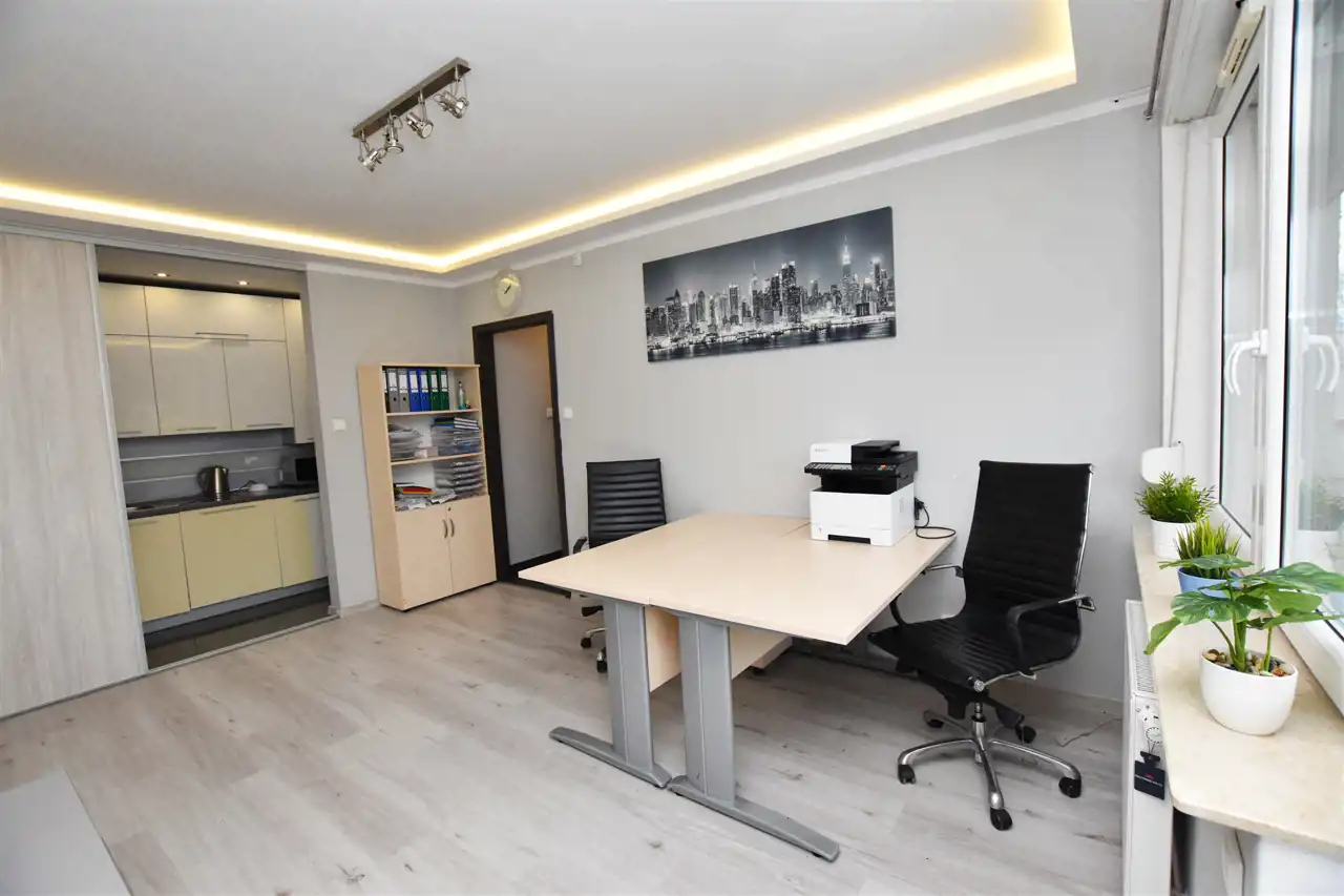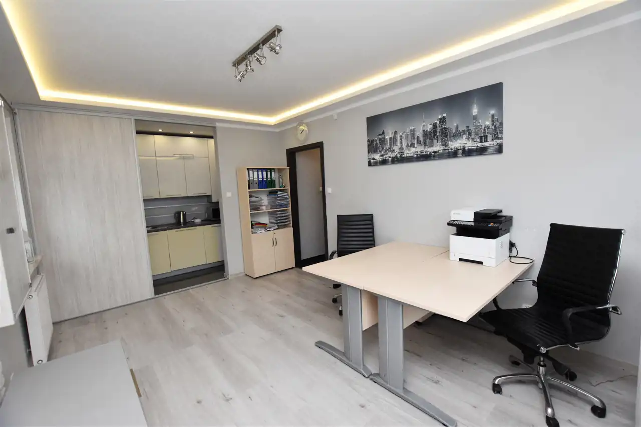 Obecnie aneks kuchenny jest odgrodzony od salonu drzwiami przesuwnymi, gdyż swego czasu mieszkanie to pełniło funkcję biurową, jednak w bardzo łatwy sposób można to usunąć i powrócić do stanu pierwotnego, przez co uzyskamy większą przestrzeń. Dodatkowo w mieszkaniu zamontowana instalacja alarmowa z monitoringiem wysokiej klasy (jeśli nowy kupujący uzna, iż jest mu to zbędne można ten monitoring przenieść w dowolne miejsce lub sprzedać).