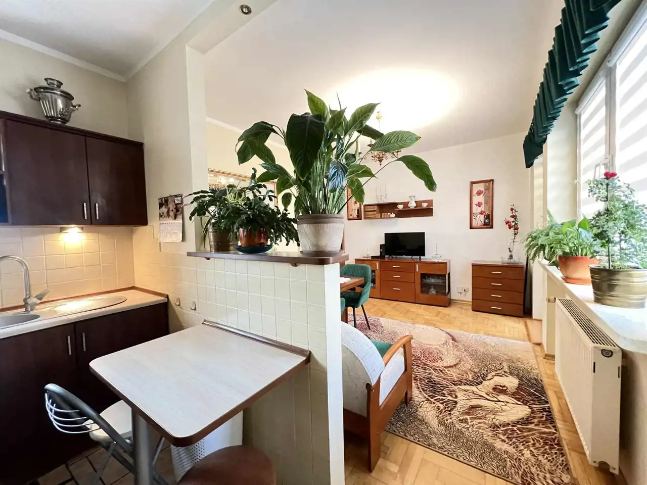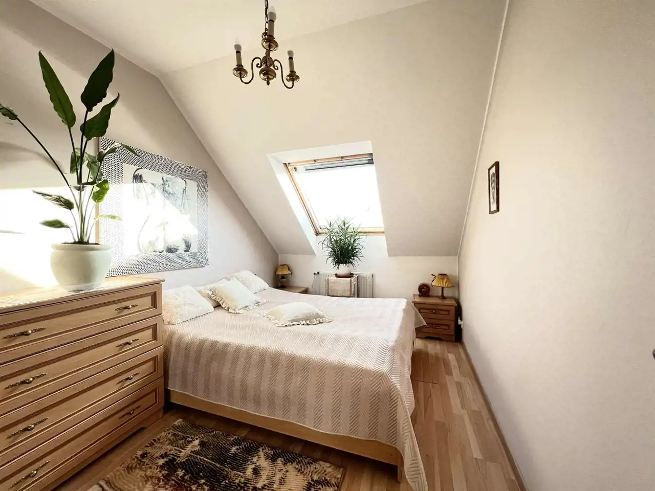 Mieszkanie bardzo ustawne, z funkcjonalnym rozkładem, składa się z salonu połączonego z aneksem kuchennym, 2 pokoi, łazienki, przedpokoju. Mieszkanie słoneczne, zadbane, częściowo umeblowane. W oknach dachowych rolety zewnętrzne na pilota.