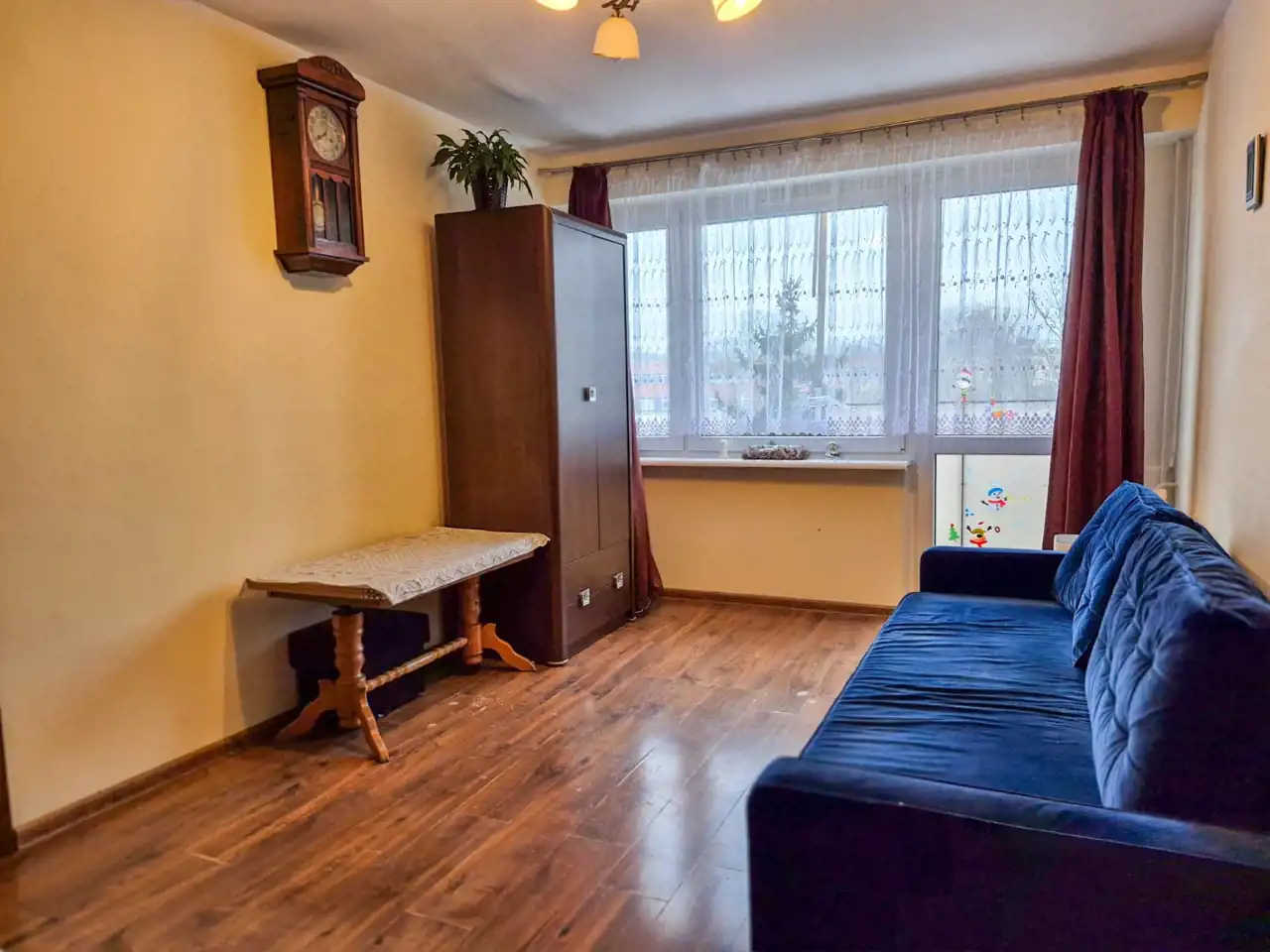 Mieszkanie w stanie do odświeżenia, o funkcjonalnym i ustawnym układzie pomieszczeń, z możliwością dostosowania wnętrza do własnych potrzeb. Lokal daje duży potencjał aranżacyjny, szczególnie w zakresie modernizacji łazienki. Na podłogach położone są panele oraz płytki. W kuchni pozostaje zabudowa meblowa, bez suszarki i zmywarki, co umożliwia doposażenie według własnych potrzeb, a układ pomieszczenia pozwala na ewentualną wymianę sprzętów bez większych przeróbek. Łazienka w starszym standardzie – rekomendowane odświeżenie lub remont według własnej aranżacji. W lokalu znajdują się sprawne instalacje elektryczne (miedziane). Mieszkanie jest jasne i ustawne, idealne zarówno na własne cele mieszkaniowe, jak i pod wynajem, bez konieczności przeprowadzania natychmiastowego generalnego remontu.