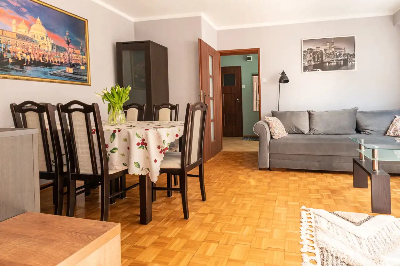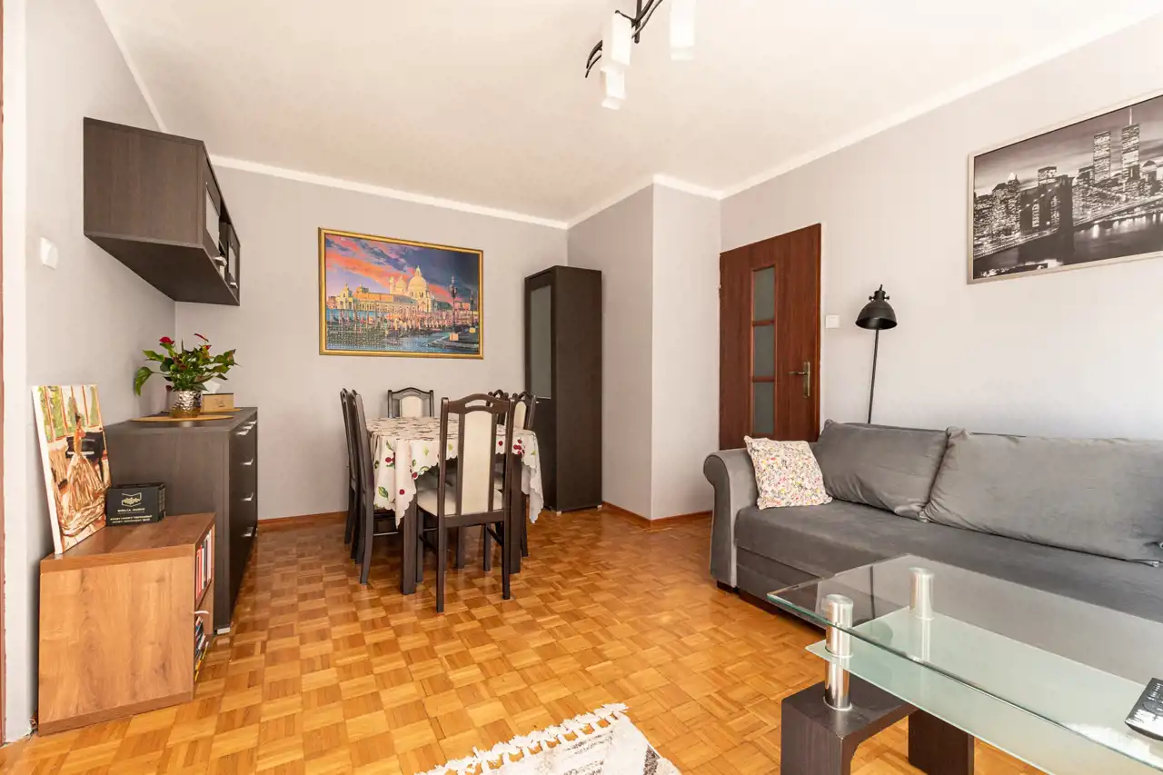 Co ważne: mieszkanie sprzedawane jest z prawie całym umeblowaniem i wyposażeniem - poza nielicznymi rzeczami osobistymi.