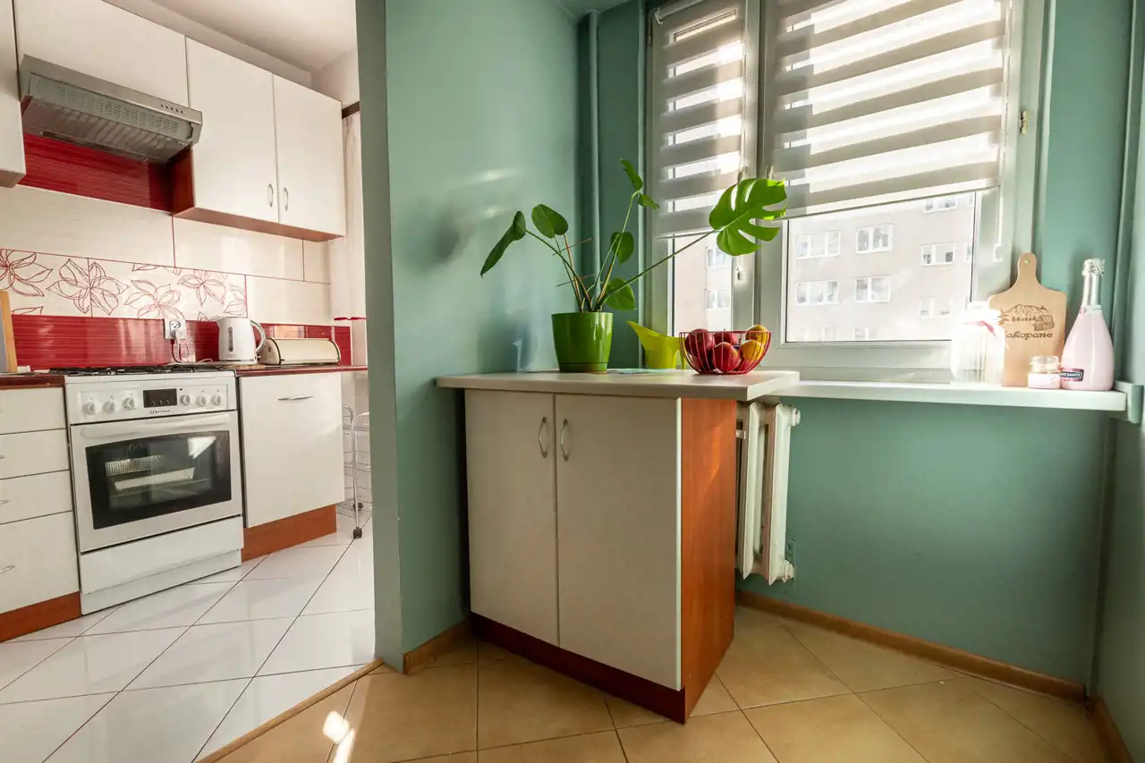 Na wprost wejścia do mieszkania powierzchnia, która idealnie nadaje się na zrobienie jadalni z oknem, a na lewo od niej widna kuchnia.