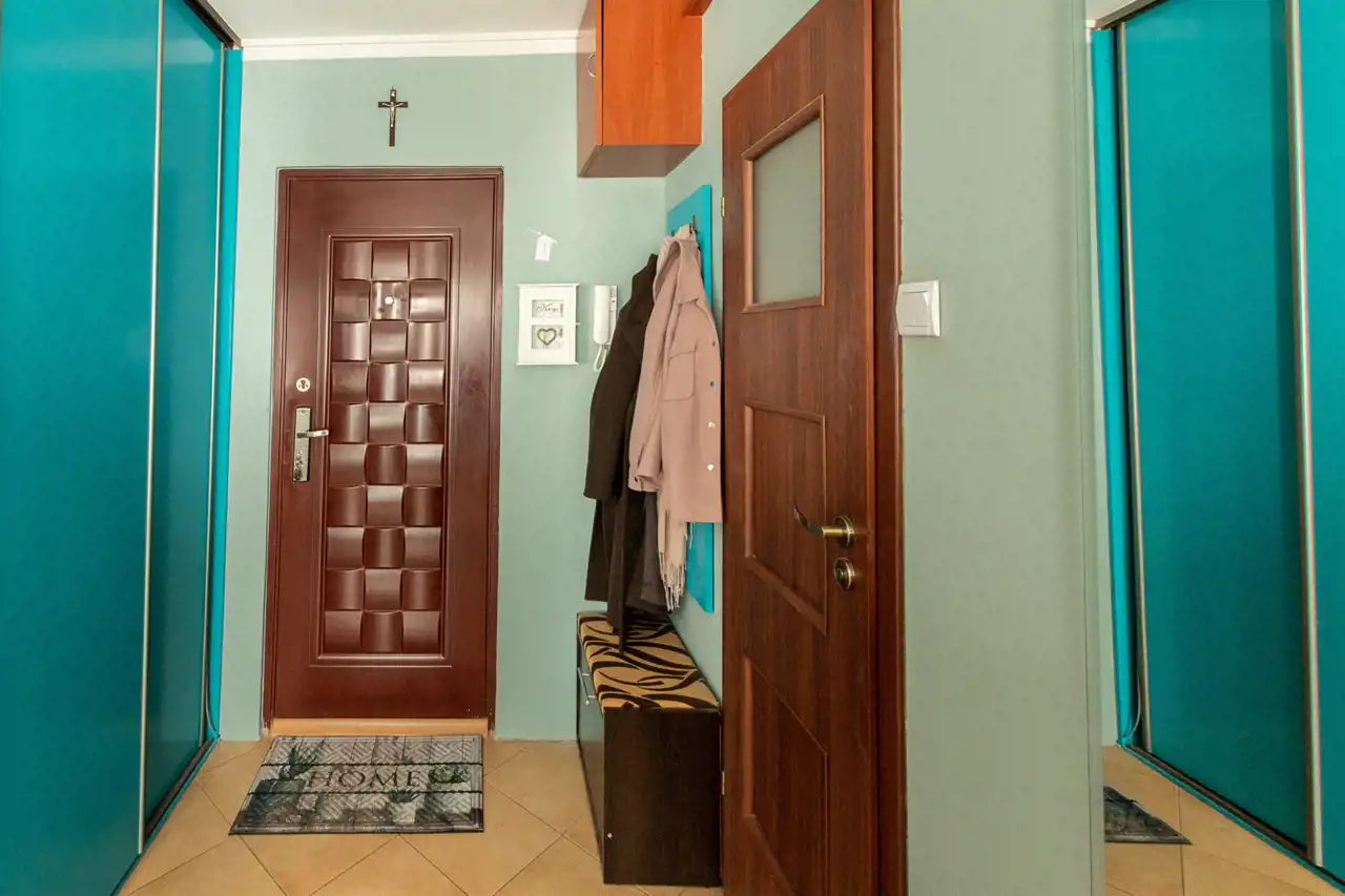 W przedpokoju szafa w zabudowie.