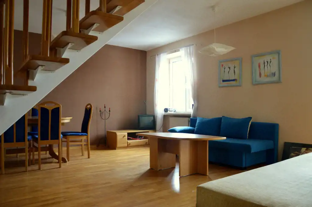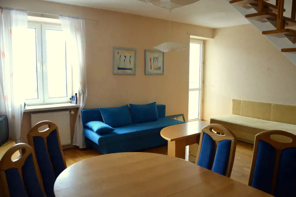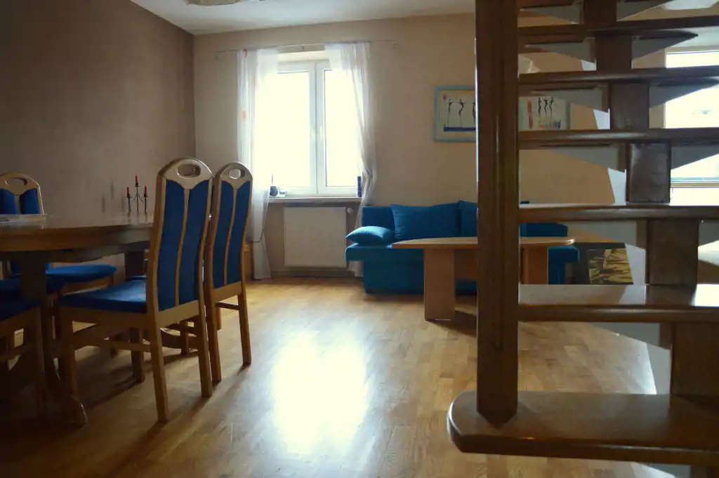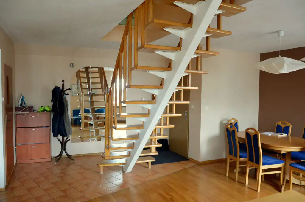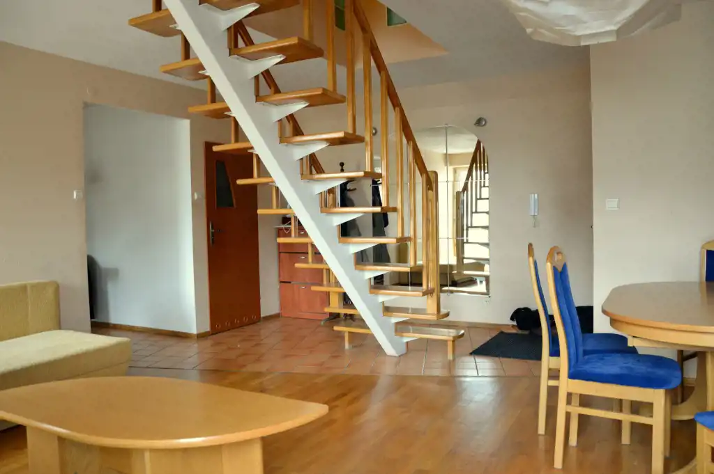 Na sprzedaż dwupoziomowe mieszkanie w bloku z cegły o powierzchni 88 m2. Poziom I mieszkania składa się z dużego salonu z którego prowadzi wyjście na balkon, oddzielnej kuchni z oknem, oraz łazienki z wc wyposażonej w kabinę prysznicową. Na podłodze salonu położono panele, w kuchni i łazience terakota oraz glazura. Na drugi poziom mieszkania prowadzą schody z salonu.