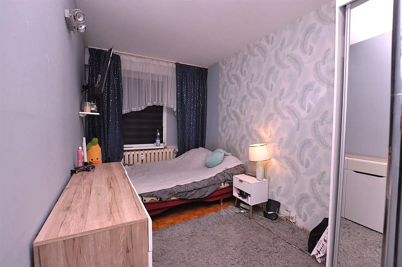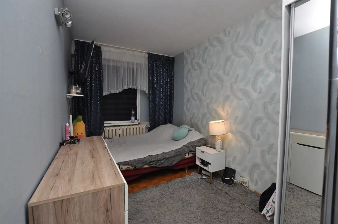 Lokal znajduje się na 4 piętrze w wieżowcu, w którym znajdują się cichobieżne windy. Mieszkanie w najbardziej poszukiwanym metrażu 49m2 z trzema oddzielnymi pokojami. Do każdego pomieszczenia wchodzimy bezpośrednio z przedpokoju. Mieszkanie zostało trochę przeprojektowane, co pozwoliło uzyskać ustawną kuchnię i dość spory najmniejszy pokój. Na całość 49m2 składają się: