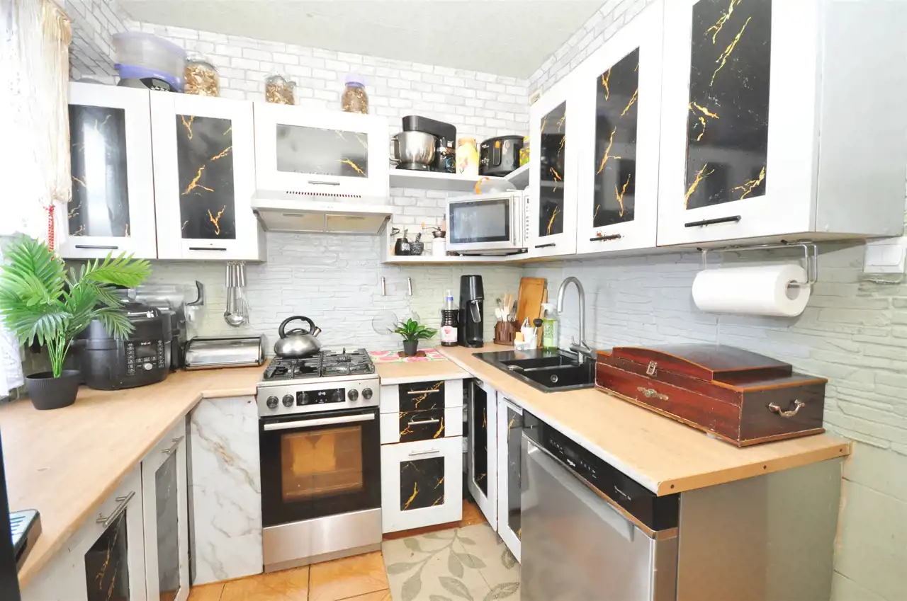 *W kuchni wszstkie sprzęty AGD: podwójna lodówka, kuchenka wolnostojąca- płyta gazowa, piekarnik elektryczny, zmywarka, okap, pod zlewem młynek rozdrabniający resztki, dwufunkcyjna stacja uzdatniania wody, niektóre sprzęty jeszcze na gwarancji