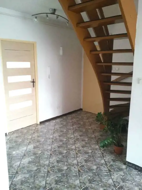 Na pierwszym poziomie znajduje się przestronny salon otwarty na przedpokój, kuchnia z dużą jadalnią i WC. Na wyższym poziomie znajdziemy sypialnię, pokój, łazienkę i WC. W całym mieszkaniu na podłogach znajdziemy terakotę i gładzie gipsowe. W łazience i WC glazura i terakota, podobnie jak w kuchni.