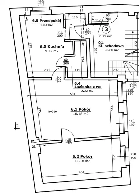 W kamienicy dostępne są mieszkania są o pow. od 25 do 45 m2 . Te większe mają możliwość przerobienia na tzw. dwupaki.