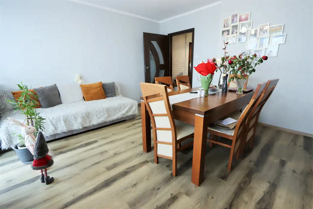 W pokojach i przedpokoju nowe panele podłogowe zaś w kuchni i łazience kafle