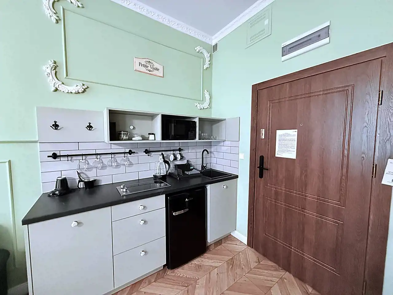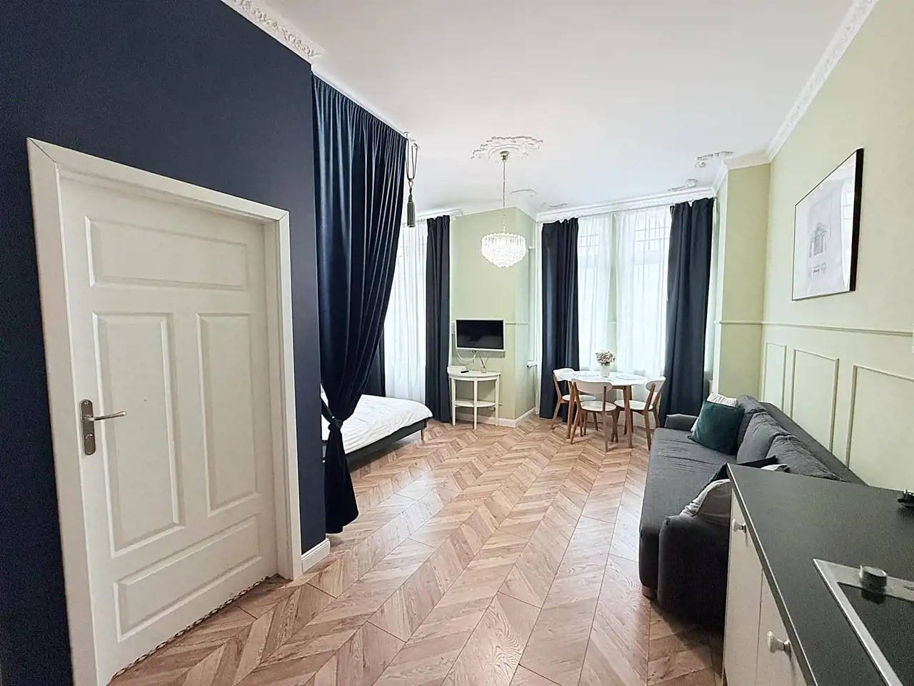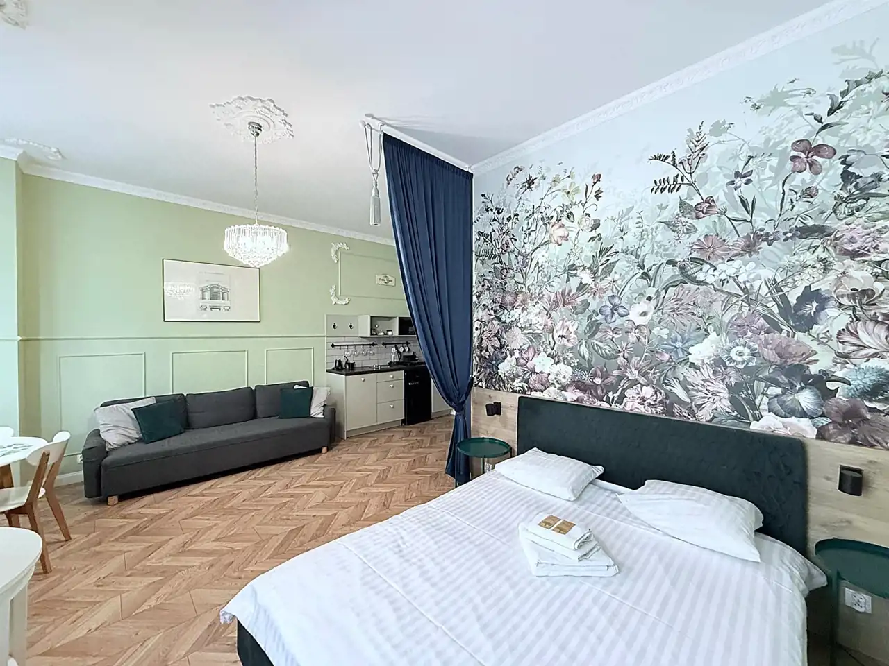 Mieszkanie zostało wykończone z wysokiej klasy materiałów z przywiązaniem uwagi do najdrobniejszych szczegółów.