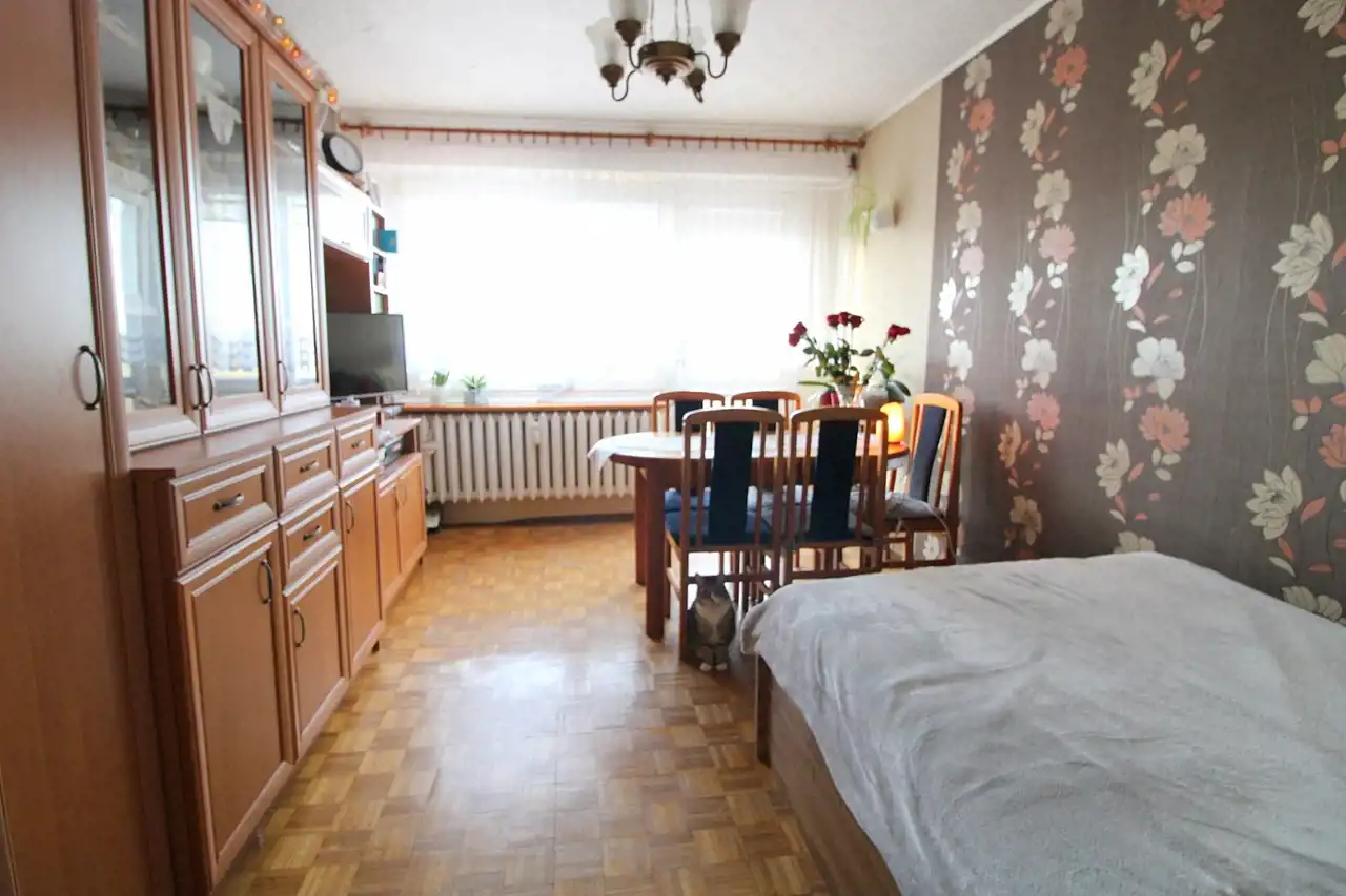 Mieszkanie usytuowane na czwartym piętrze (ostatnim) w bloku z 1974roku, wystawa okien wschód-zachód, co sprawia iż mieszkanie jest bardzo dobrze doświetlone i słoneczne. Blok w dobrej kondycji, ocieplony, wymienione piony wod.- kan., teren ogrodzony. W bliskiej odległości centrum handlowe, tuż przy bloku sklep Paluszek, nowo wybudowana szkoła podstawowa (bez przejścia przez ruchliwą ulicę), plac zabaw, Park Tysiąclecia.