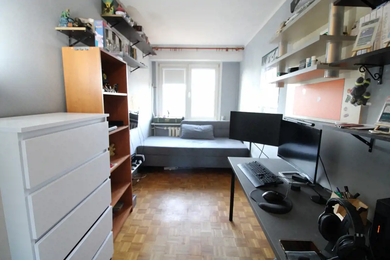 Lokal w dobrym stanie, na ścianach tapety, w średnim pokoju gładź, na podłodze mozaika parkietowa, okna drewniane wymienione ok 20 lat temu w bardzo dobrym stanie. Lokalizacja idealna dla rodzin z dziećmi, osób pracujących w domu, okolica spokojna i dobrze skomunikowana.