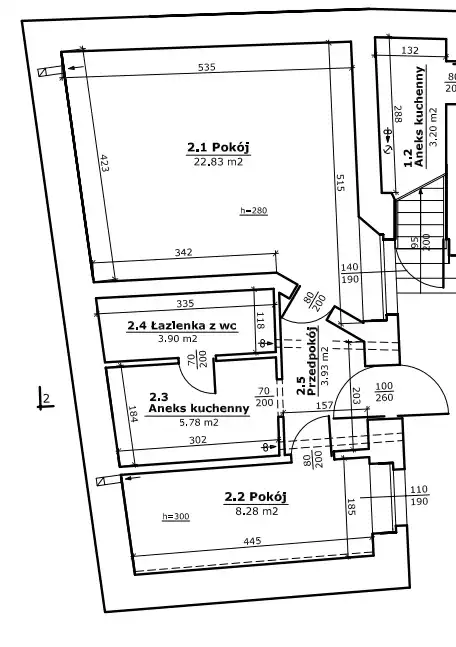 Mieszkania są o pow. od 25 do 45 m2 . Te większe mają możliwość przerobienia na tzw. dwupaki.