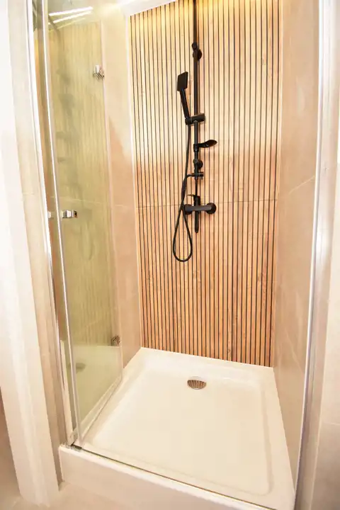 Łazienka połączona z wc z dużym wygodnym prysznicem.