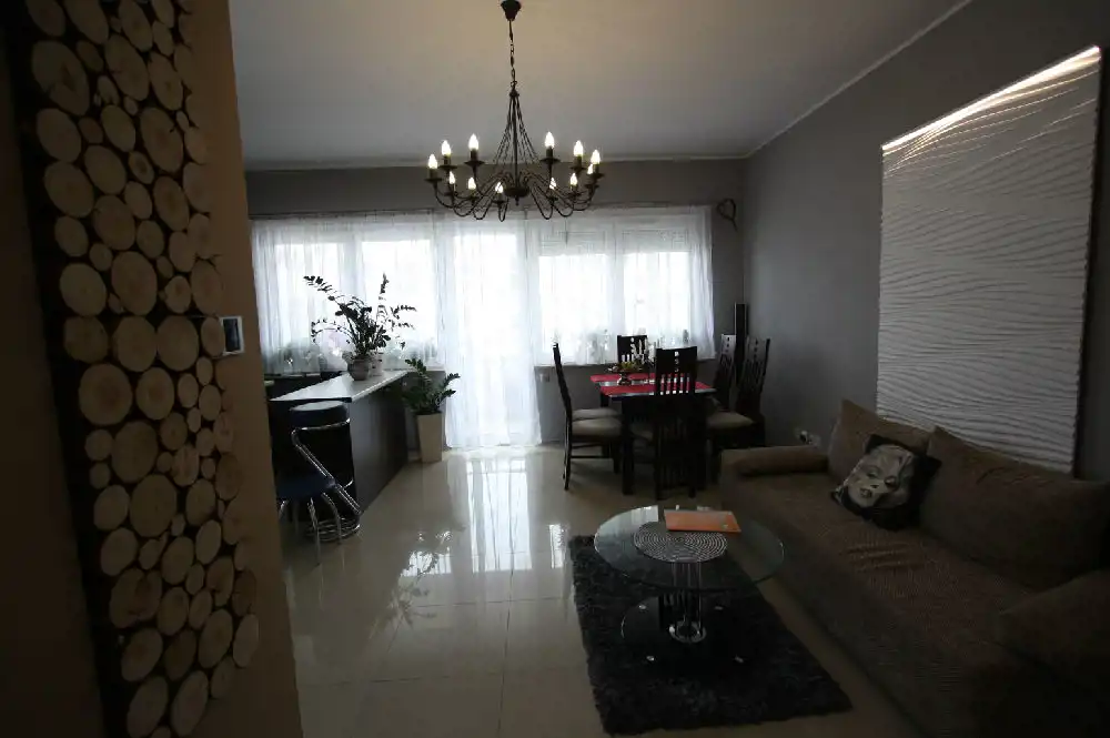 Bardzo ładne 3-pokojowe, mieszkanie o pow. 66,5 m2. W skład mieszkania wchodzą dwie przestronne sypialnie oraz duży salon połączony z aneksem kuchennym. Wszystko urządzone funkcjonalnie, ze smakiem i z wysokiej klasy materiałów. Ciekawie skomponowano oświetlenie salonu - całość sterowana pilotem. W cenie pozostaje całe wyposażenie stałe mieszkania - zabudowa kuchenna z pełnym wyposażeniem AGD oraz szafy typu Komandor w przedpokoju oraz sypialniach. Pozostała część wyposażenia do indywidualnych ustaleń. W mieszkaniu są zainstalowane rolety zewnętrzne antywłamaniowe oraz drzwi antywłamaniowe. Czynsz do Wspólnoty 320 zł.