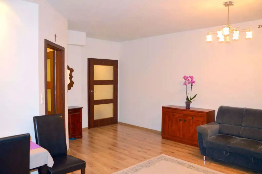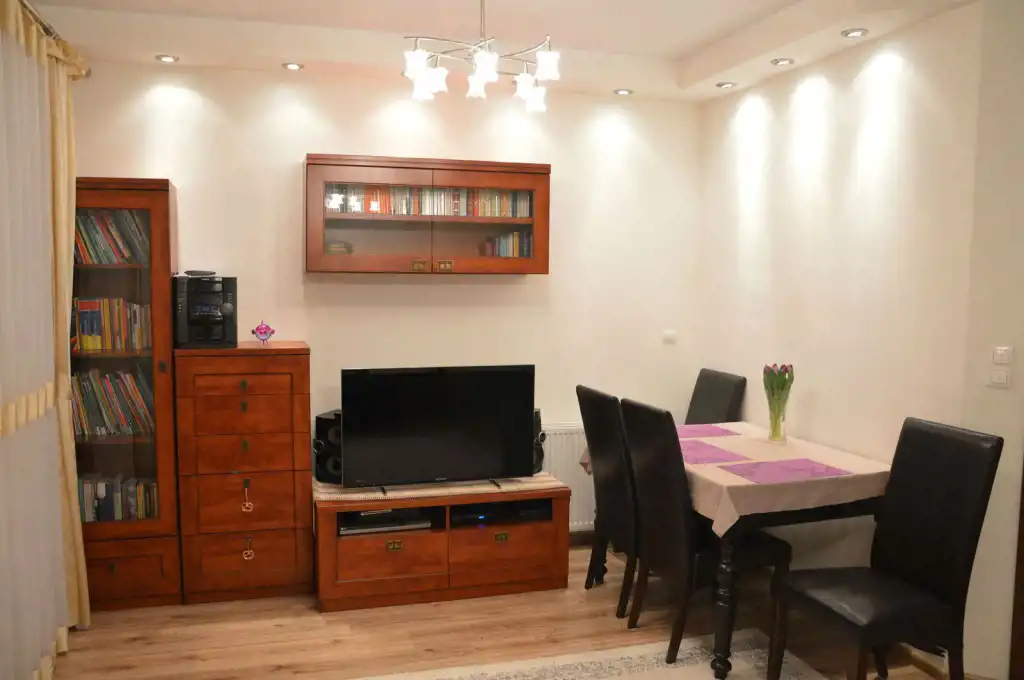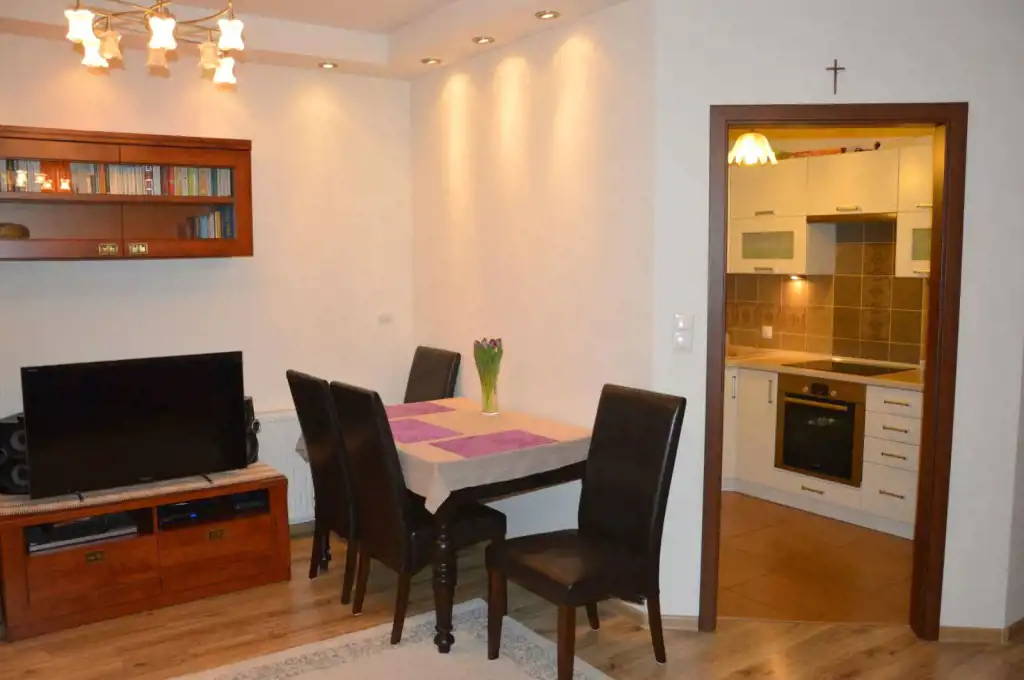 Mieszkanie nie wymaga absolutnie żadnych nakładów finansowych. Na ścianach położono gładzie oraz glazurę, na podłogach panele i terakotę. Łazienka wyposażona jest w wannę z funkcją prysznica. W kuchni znajdują się sprzęty AGD w zabudowie; lodówka, płyta indukcyjna, piekarnik oraz zmywarka. W jednej z sypialni oraz w przedpokoju zabudowane szafy typu Komandor. Wszystkie wymienione wyżej sprzęty oraz meble pozostają w cenie mieszkania.