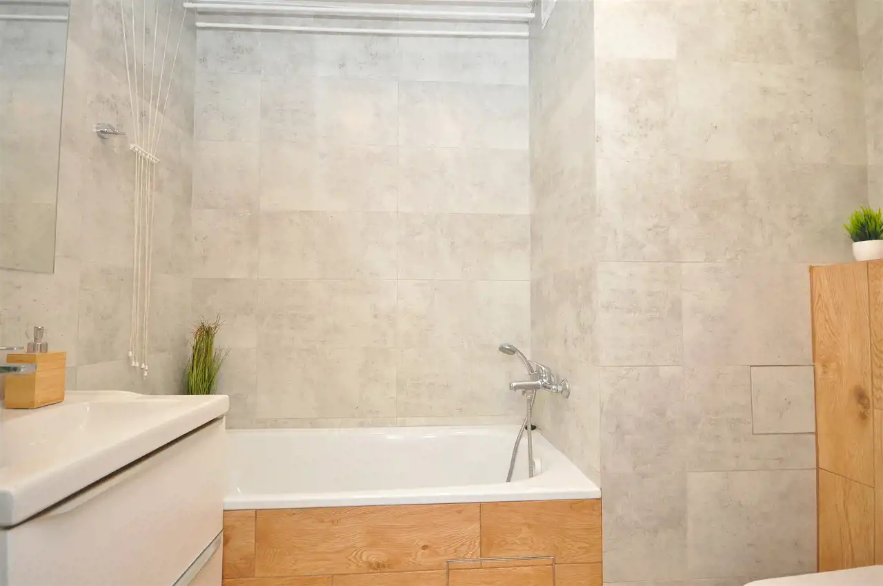 W łazience i przestrzeni otwartej z aneksem kuchennym płytki, w reszcie pomieszczeń panele. Na ścianach gładzie, w jednym pokoju pomalowana tapeta. Mieszkanie przeszło 3 lata temu remont, wymieniono elektrykę w części otwartej plus łazienka, wymieniono całą hydraulikę, łazienka zrobiona od podstaw! Dzięki nowatorskiej aranżacji właścicieli jest sprzedawane jako wnętrze z otwartą przestrzenią, nietypową dla tej techniki budowy! Dzięki pozbyciu się kilku ścianek działowych mieszkanie zyskało przestrzeń i zostało naturalnie doświetlone.