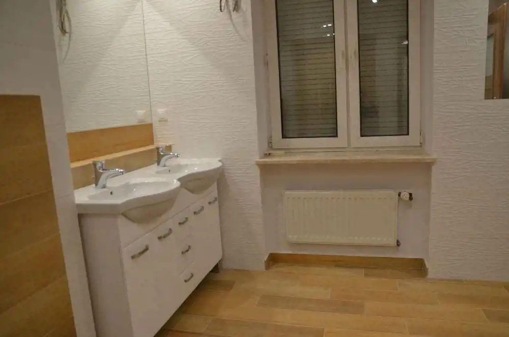 Mieszkanie po remoncie: na ścianach gładzie gipsowe natomiast w pokojach na podłogach panele podłogowe. W pozostałych pomieszczeniach tj. (kuchnia, przedpokój oraz łazienki) terakota imitująca drewno. Okna PCV z roletami zewnętrznymi.