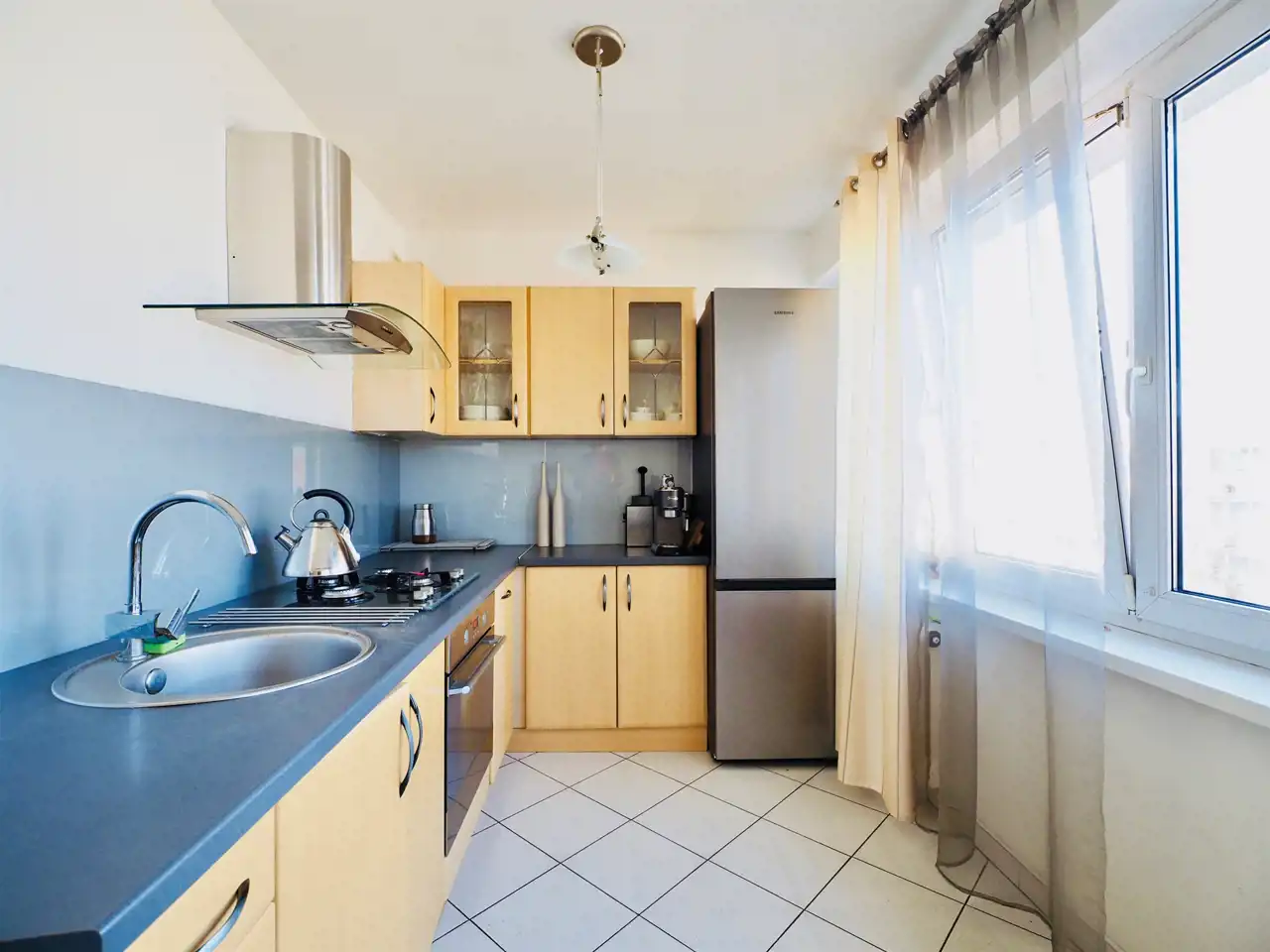 Na sprzedaż mieszkanie o powierzchni 58 m2 - przepięknie wykończone, obecnie składa się ono z dwóch pokoi, jadalni z kuchnią, przedpokoju i łazienki z WC. Mieści się w bloku na czwartym piętrze. Jest bardzo jasne, mamy tutaj tzw. open space.
