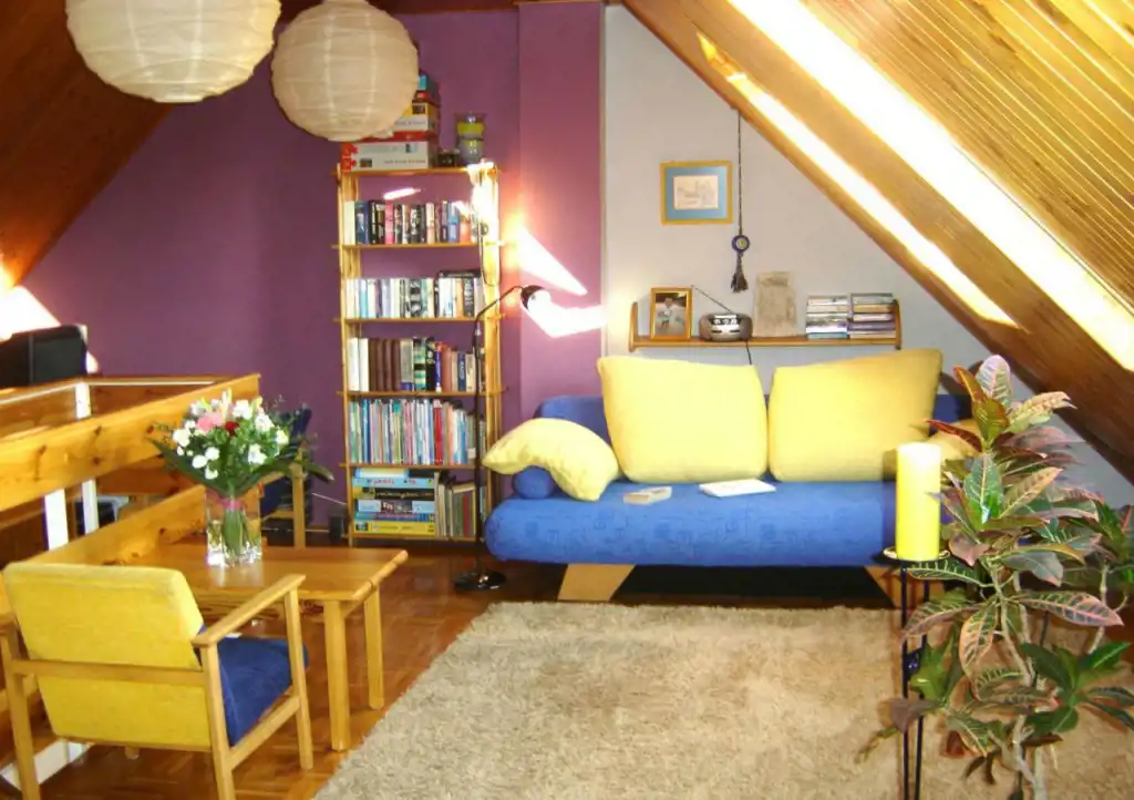 Na którym znajduje się 50-metrowy pokój oraz łazienka z prysznicem.