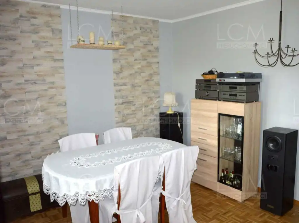 Na całkowitą powierzchnię ok 85m2 składają się 4 pokoje, łazienka, wc oraz przestronny przedpokój. Z jednego z pokoi prowadzi wyjście na bardzo duży balkon. W pokojach i w przedpokoju na podłogach mozaika parkietowa, na ścianach gładzie gipsowe, tapety i kamień ozdobny. W jednym z pokoi zabudowana szafa typu Komandor. Kuchnia, łazienka oraz wc w glazurze i w terakocie. Okna PCV, drzwi antywłamaniowe.