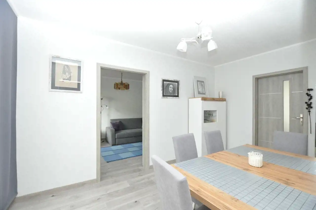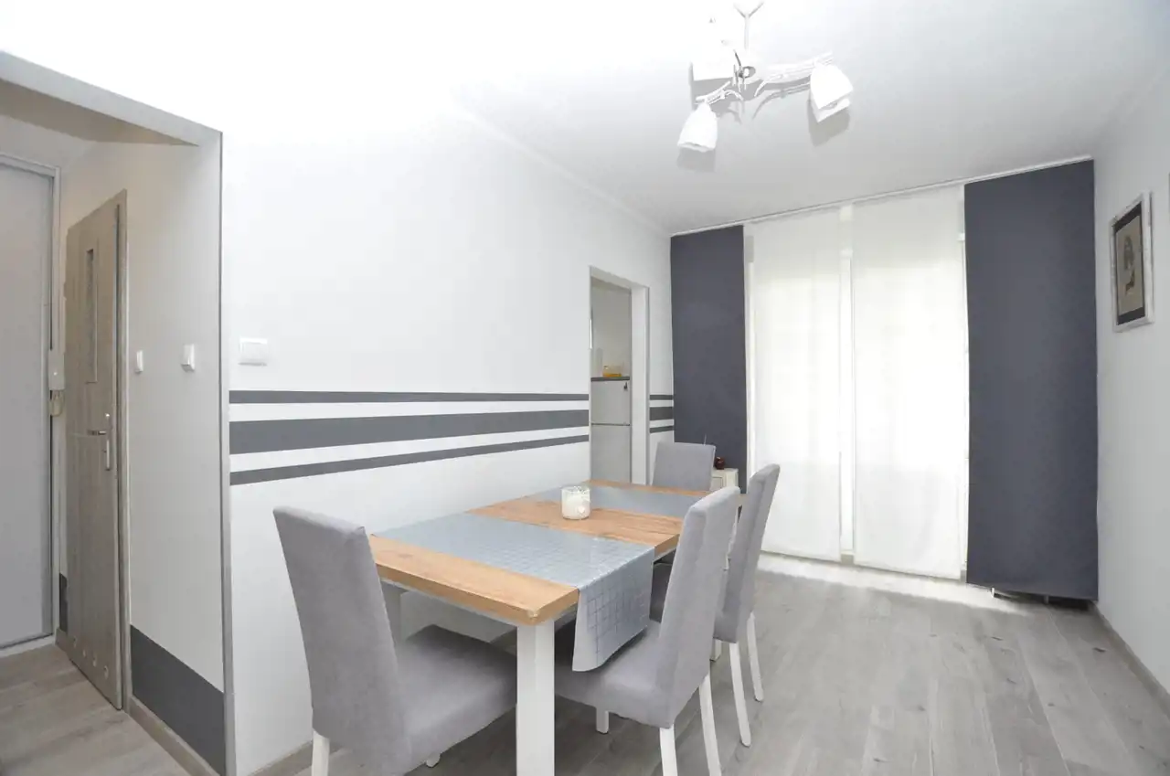 - 2 oddzielne pokoje, z pokoju środkowego wejście do kuchni i dwóch pozostałych pokoi