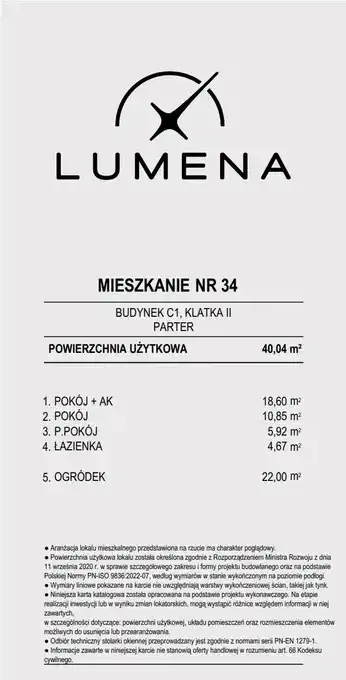 - 2-pokojowe mieszkanie numer C1.34 na parterze w budynku C1 w Inwestycji Lumena