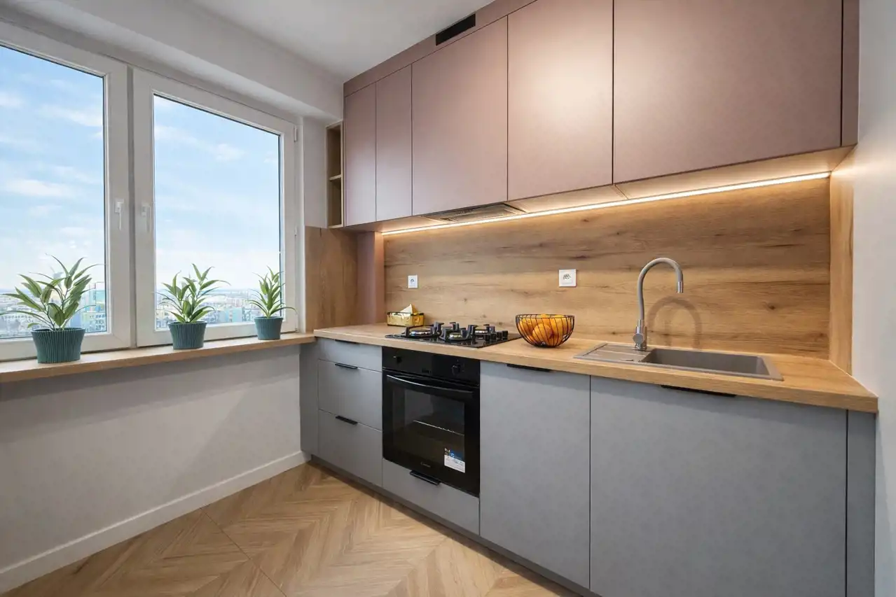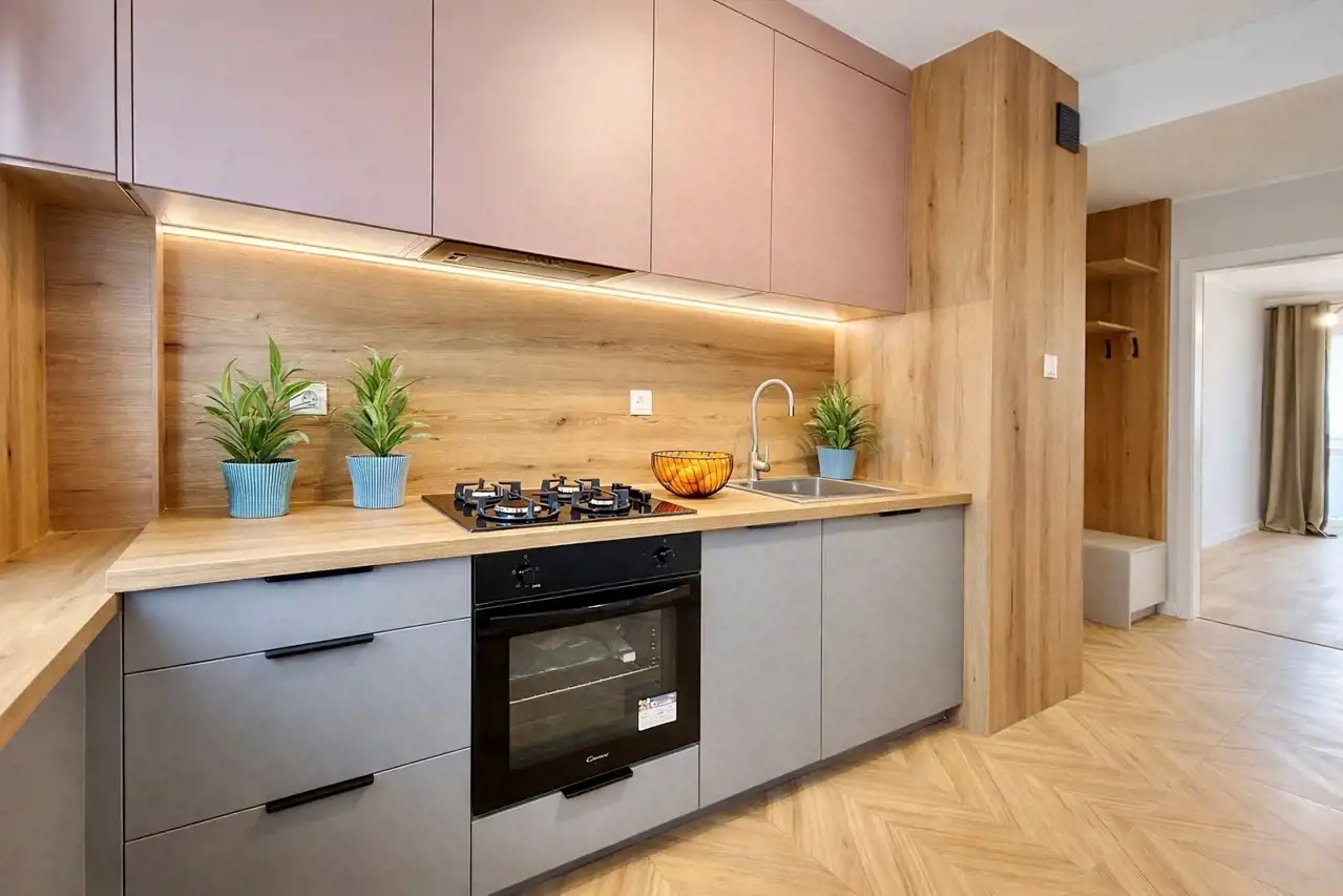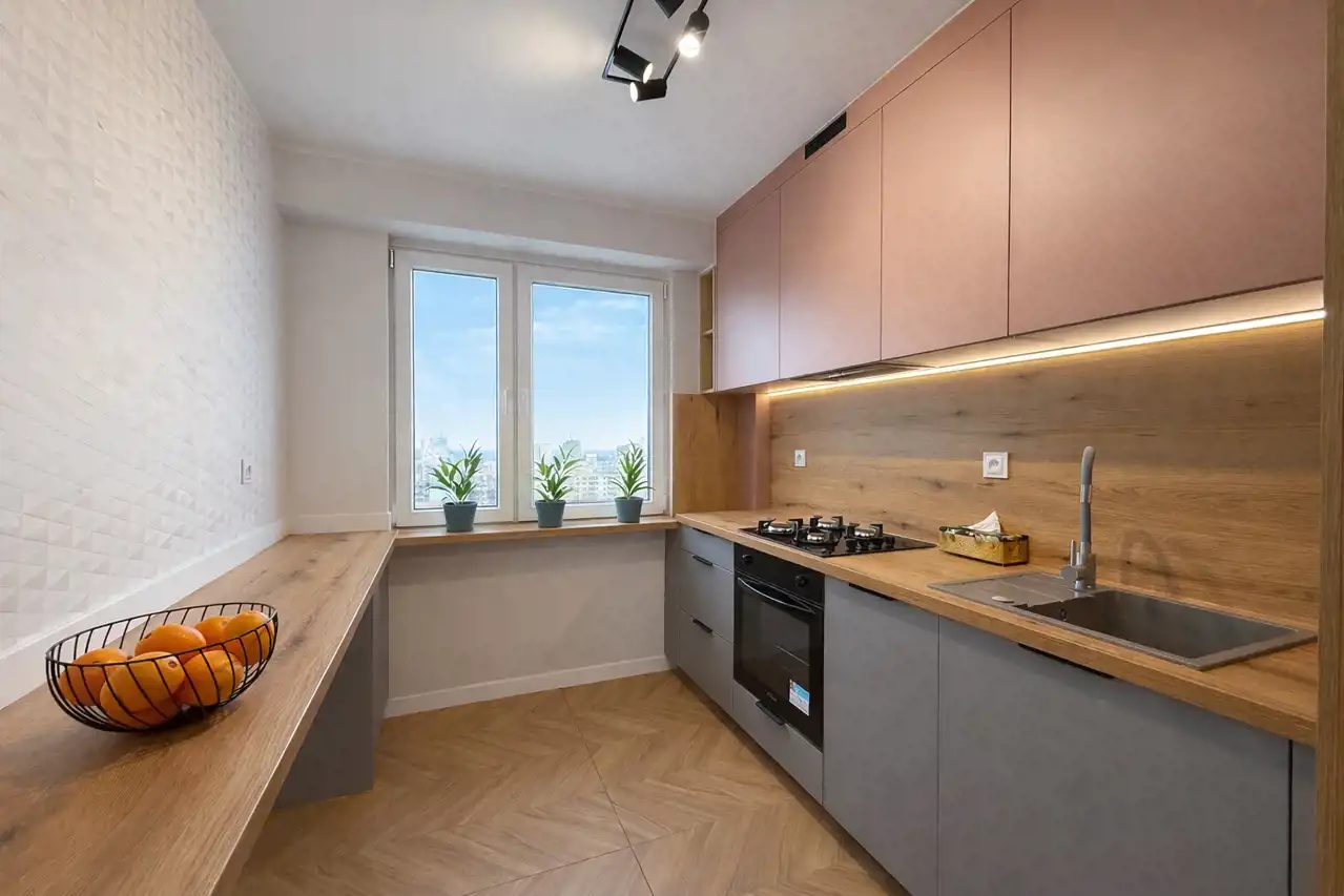 - przestronna kuchnia (meble na wymiar i sprzęt AGD: kuchenka, płyta , okap, zmywarka)
