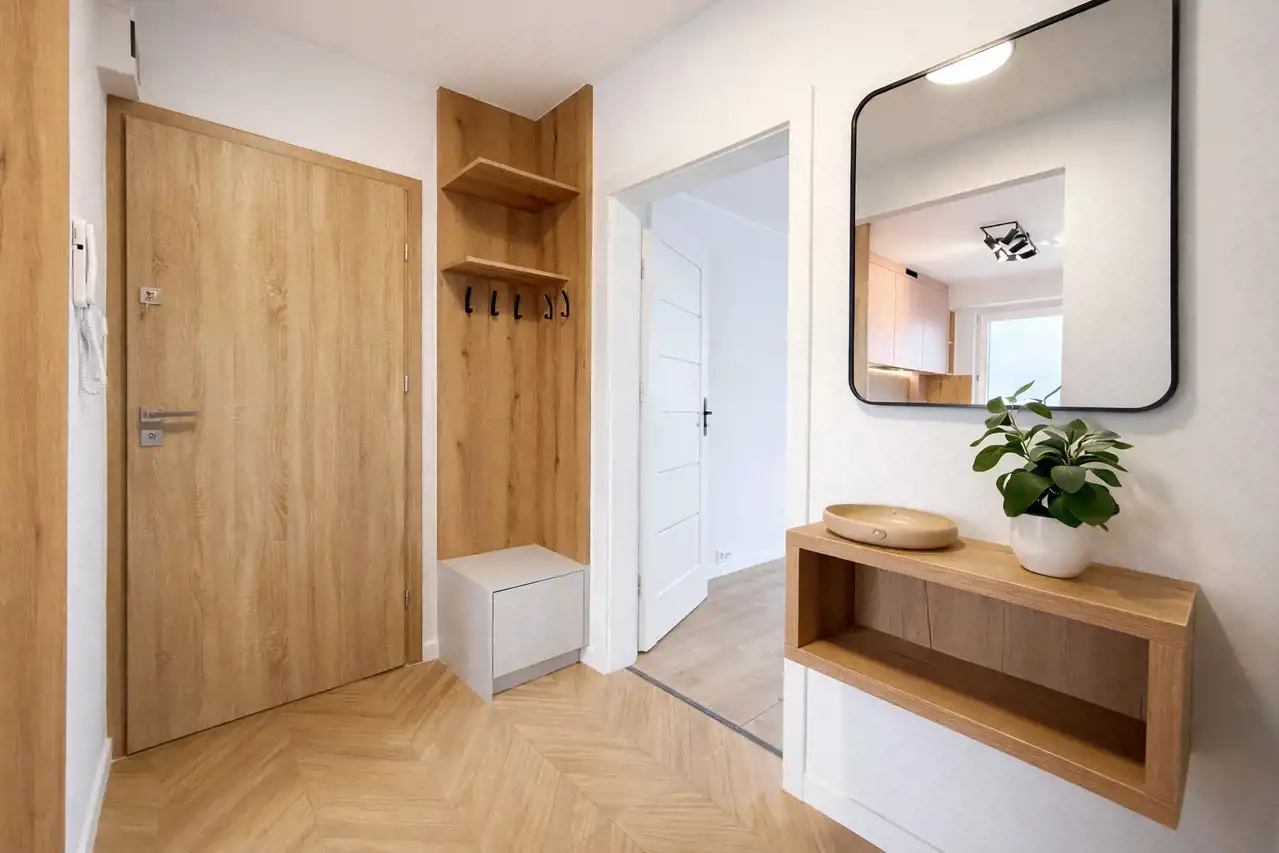 W mieszkaniu wymieniono instalację elektryczną, grzejniki, nową stolarkę drzwiową, ściany i podłogi, lokal zyskał nowoczesny wygląd i pachnie świeżością.