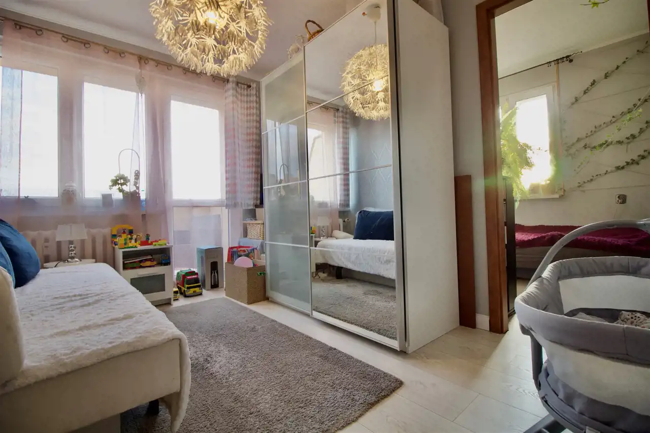 - 3 pokoje (9,33; 8,99; 10,29 m2) w tym jeden z pokoi przechodni