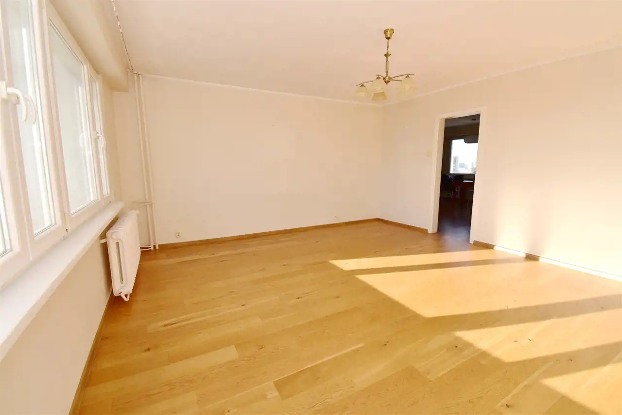 Oferta sprzedaży mieszkania o powierzchnia 60,49 m² znajdującego się Na Skarpie przy ul. Konstytucji 3-go maja na 7 piętrze w wieżowcu z wielkiej płyty z 1982 roku.