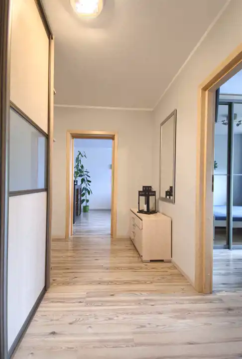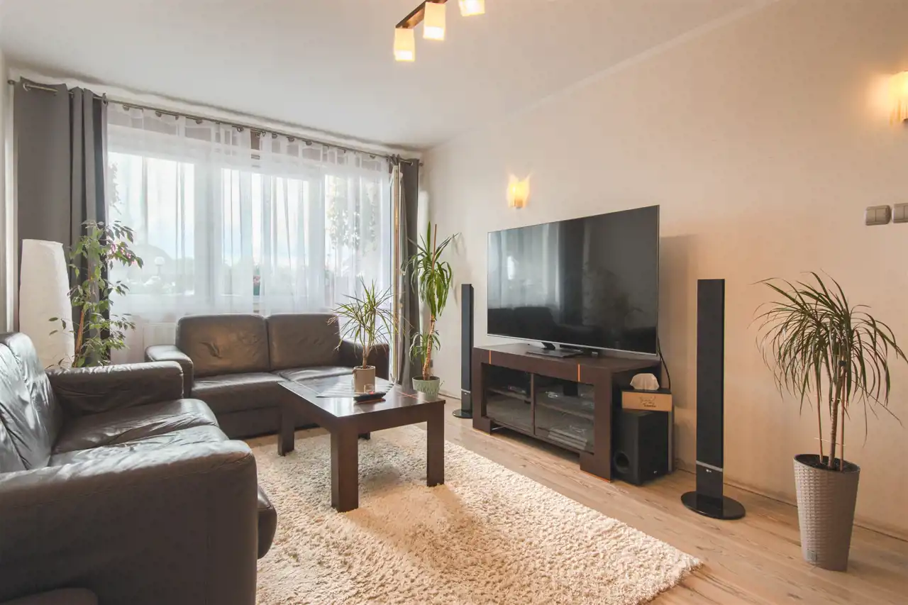 Mieszkanie składa się z 2 pokoi, oddzielnej kuchni, dużej łazienki oraz wygodnego przedpokoju. Z salonu wyjście na balkon. Okna wychodzą na południe.