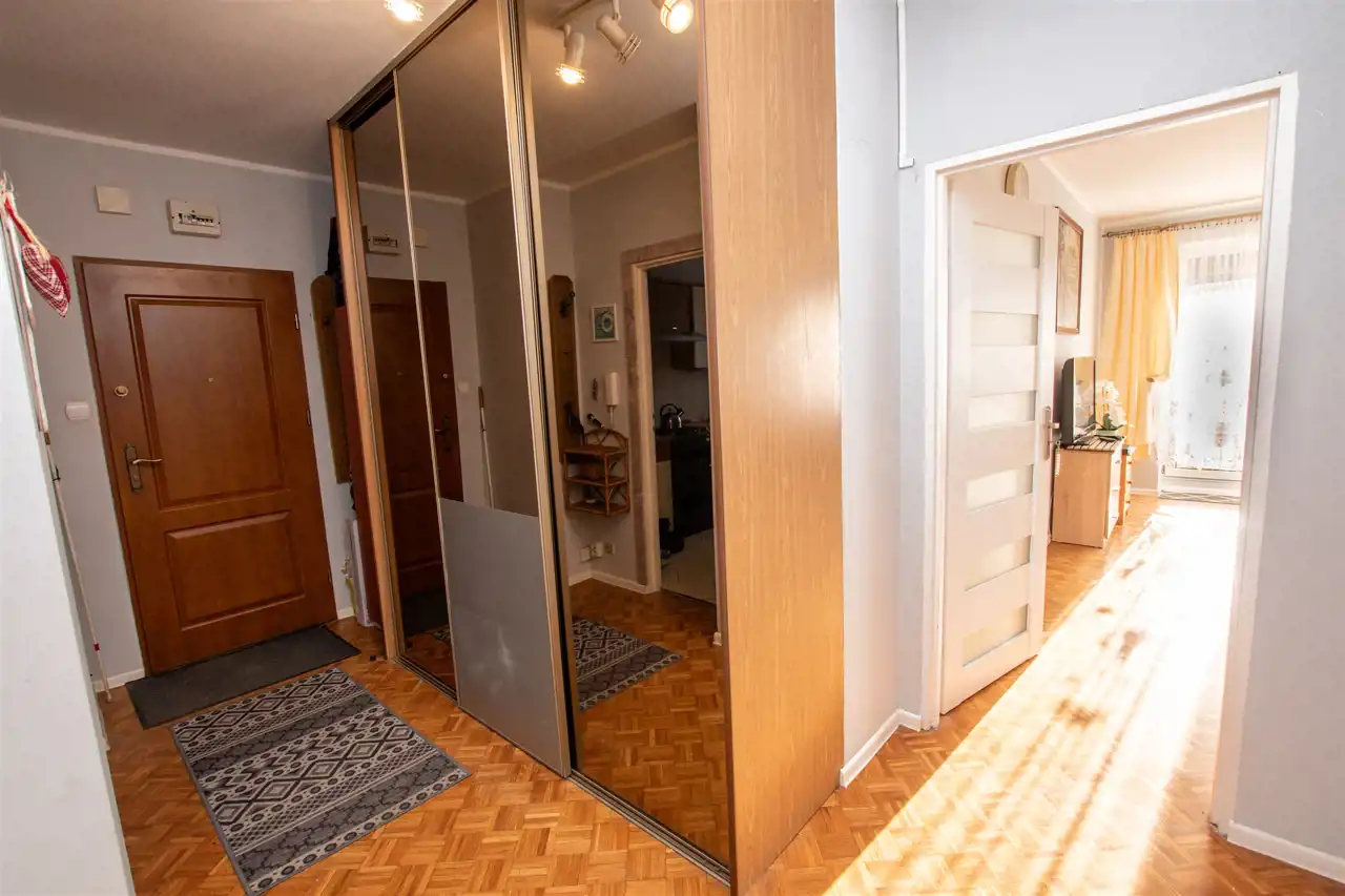 Okna pcv, częściowo wymienione grzejniki, drzwi zewnętrze antywłamaniowe. Do lokalu przynależy piwnica o powierzchni 3 m2, dodatkowo istnieje możliwość korzystania z suszarni.