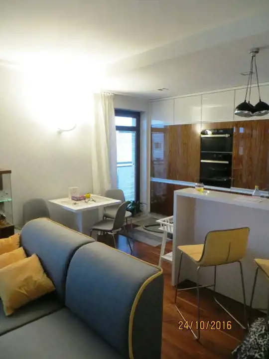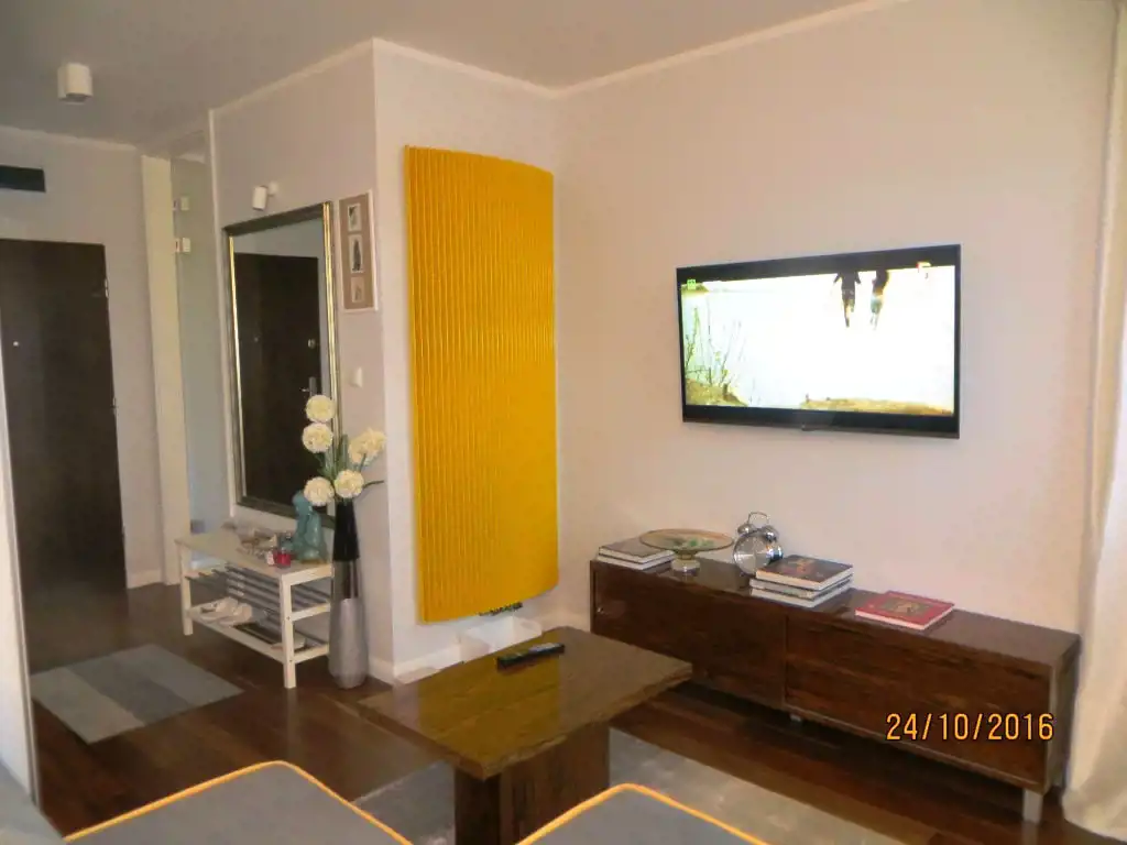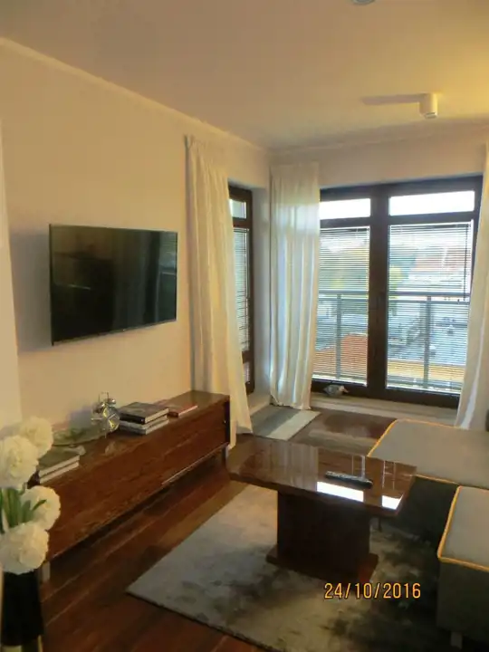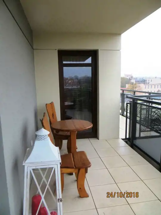 Lokal jest położony na czwartym, ostatnim piętrze nowego apartamentowca, posiada duży balkon i jest całkowicie umeblowany i wyposażony w sprzęt RTV i AGD.