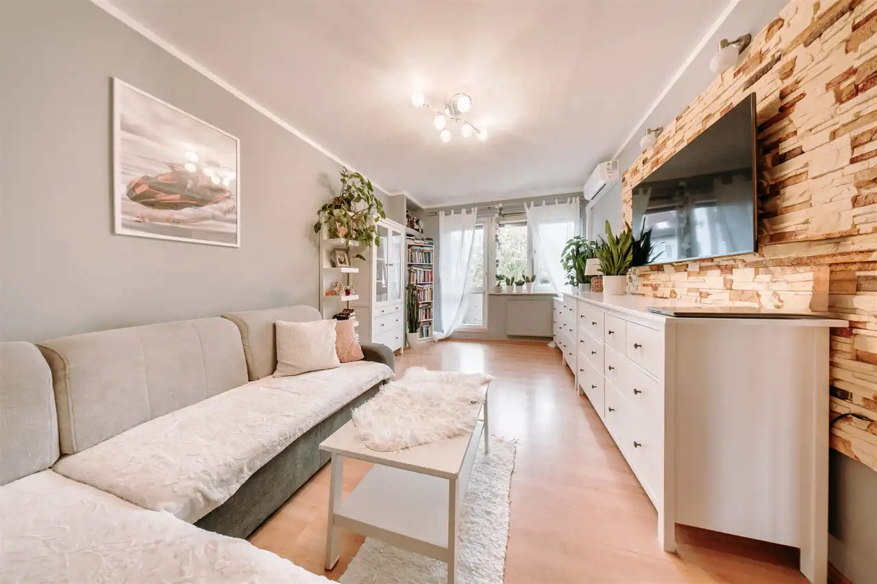 Rolety zewnętrzne, klimatyzacja w salonie, duża bo prawie 7 metrowa piwnica, świetny rozkład- to tylko niektóre atuty tego mieszkania.