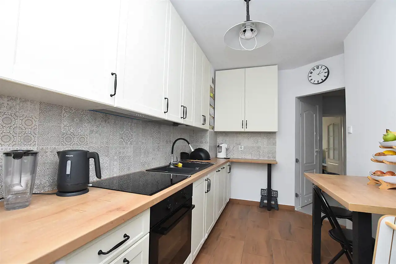 Mieszkanie jest praktycznie gotowe do wprowadzenia. Jest bardzo przytulne, słoneczne i zabrane. Było przez właścicieli sukcesywnie remontowane. Odnowienia wymaga jedynie łazienka, ale jest funkcjonalna i ma duży potencjał. W zeszłym roku wyremontowano kuchnię i mniejszy pokój. Kuchnia przeszła generalny remont: wymieniono całą zabudowę, wszystkie sprzęty oraz kafle. Wszystko jest nowe.