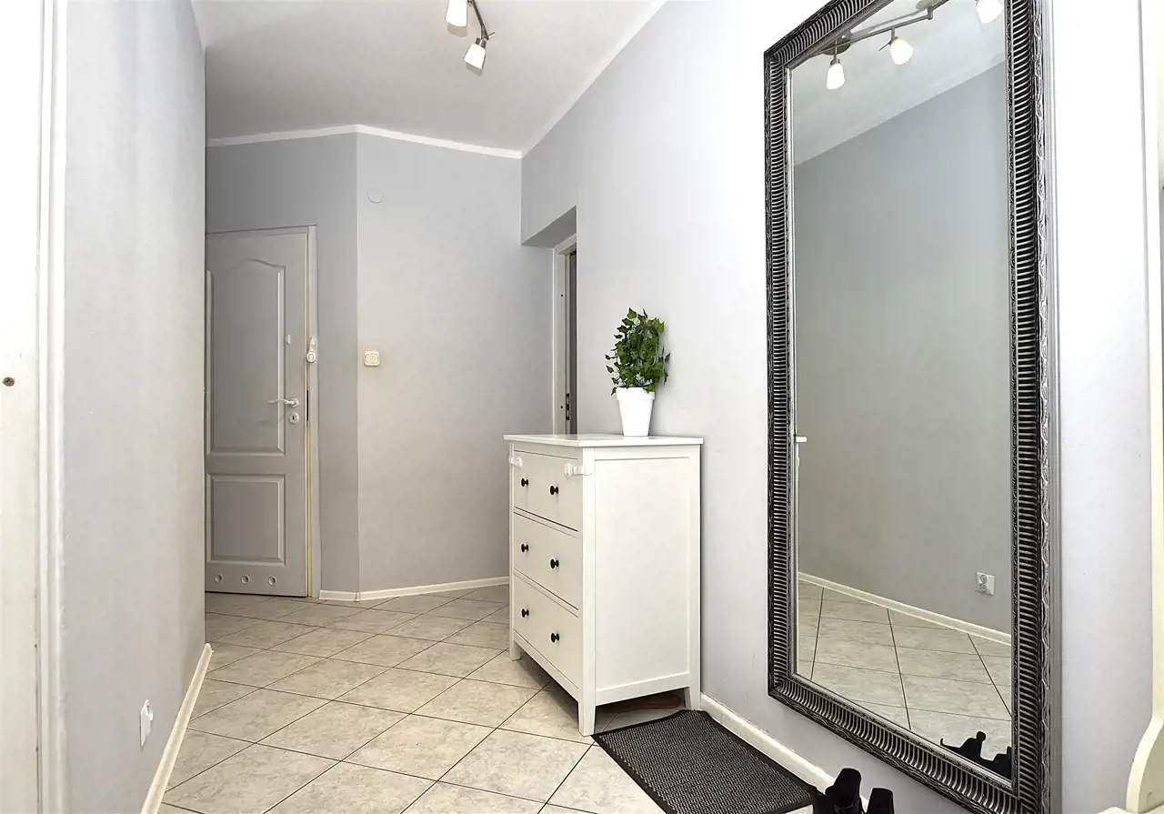Lokal ma bardzo funkcjonalny układ. Mieszkanie jest dwustronne, do wszystkich pomieszczeń wchodzimy bezpośrednio z przedpokoju, oddzielna kuchnia z oknem, spory przedpokój i ustawne pokoje. Na całą powierzchnię 55,33m2 składają się: