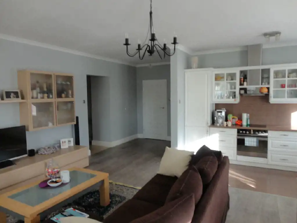 Mieszkanie słoneczne i przestronne. Składa się z salonu o powierzchni ok. 35m2 z aneksem kuchennym, wyposażonym w nowoczesną, niespełna 4-letnią zabudowę, 2 sypialni, zabudowanej garderoby, spiżarki, przedpokoju, dużej, 14m2 łazienki wyposażonej w wannę, kabinę prysznicowa, bidet oraz wc.