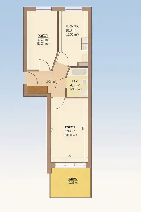 : : Powierzchnia użytkowa mieszkania wynosi 49 m2 i składa się z: