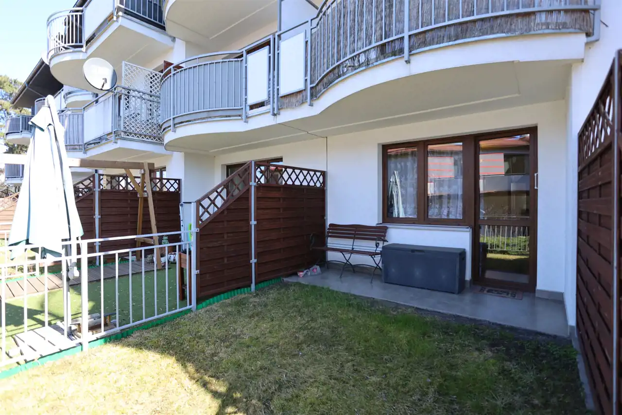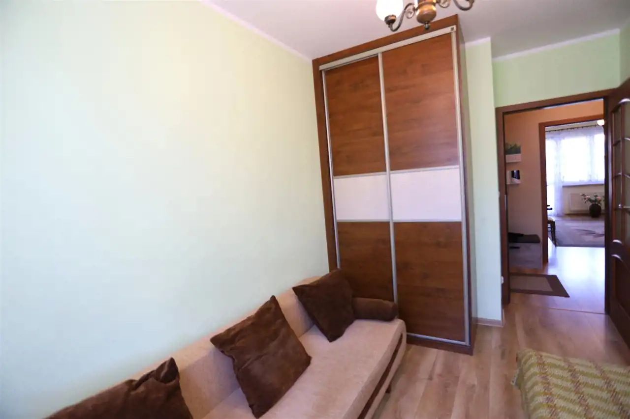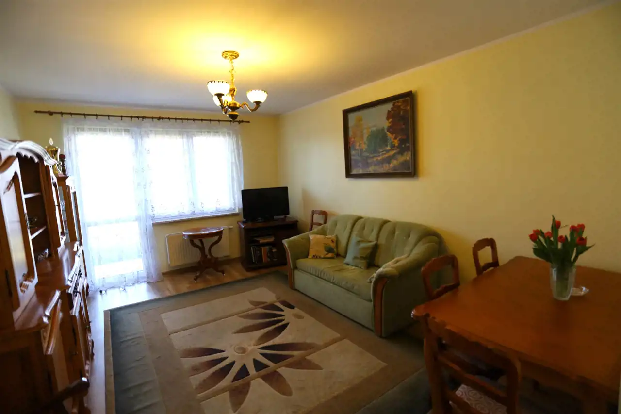 Z pokoju dziennego jest wyjściem na własny ogródek. Mieszkanie wykończone i wyposażone.