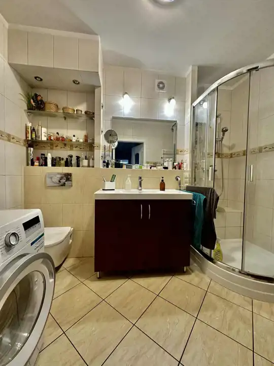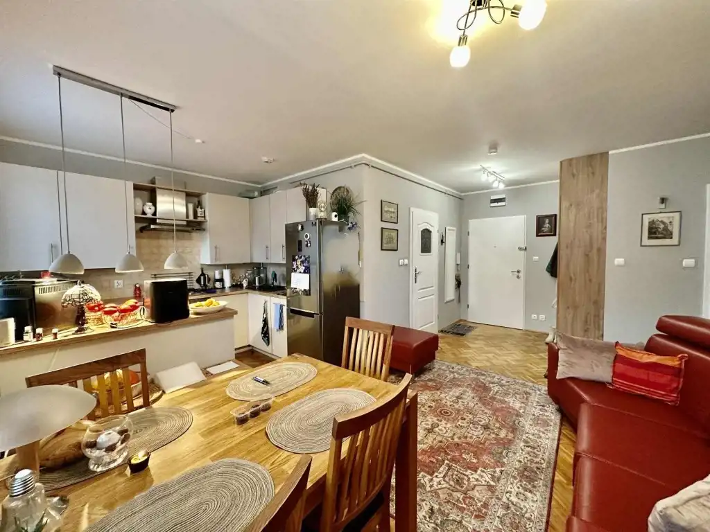 Na powierzchnię 59m2 składają się salon z aneksem kuchennym, 2 pokoje, łazienka, garderoba i przedpokój.