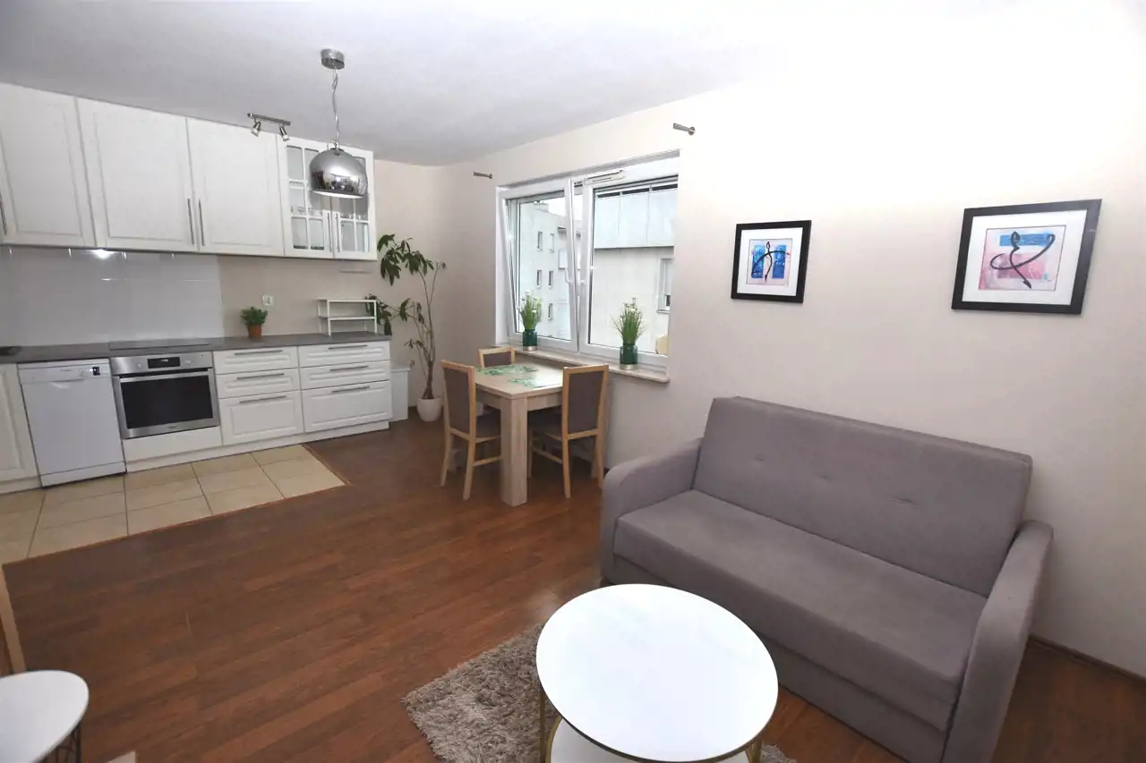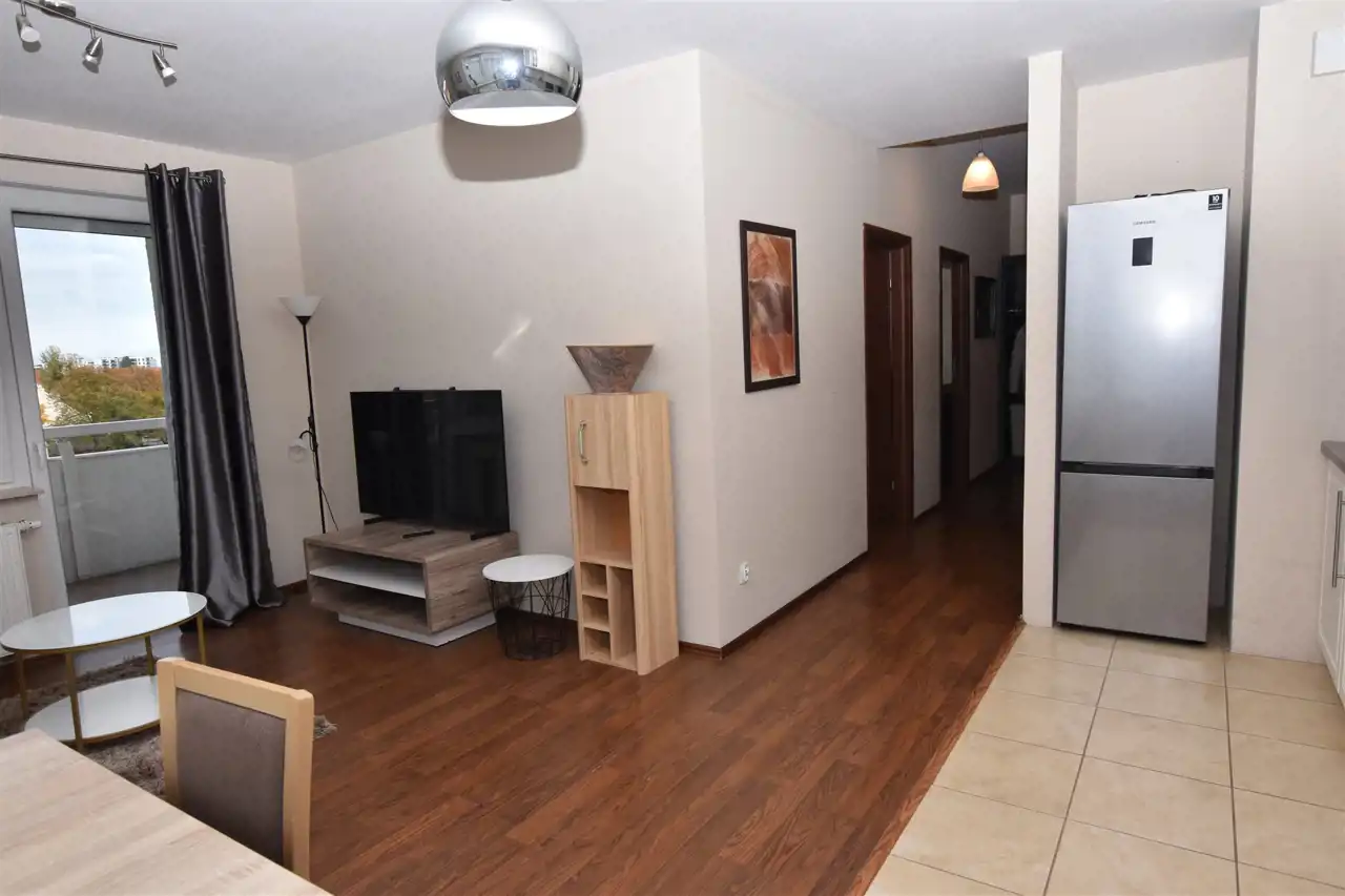 - Przestronny salon (26m2) z dużymi oknami i wyjściem na duży balkon