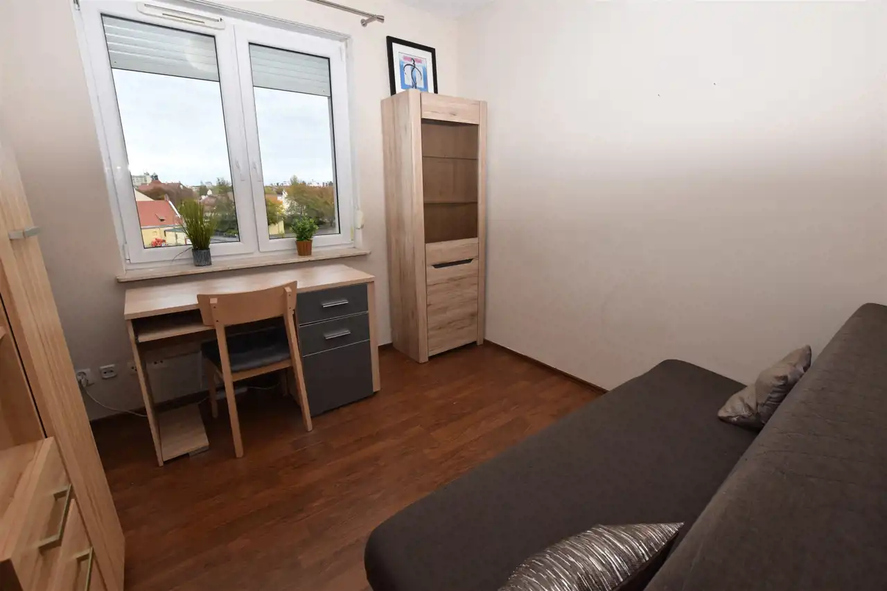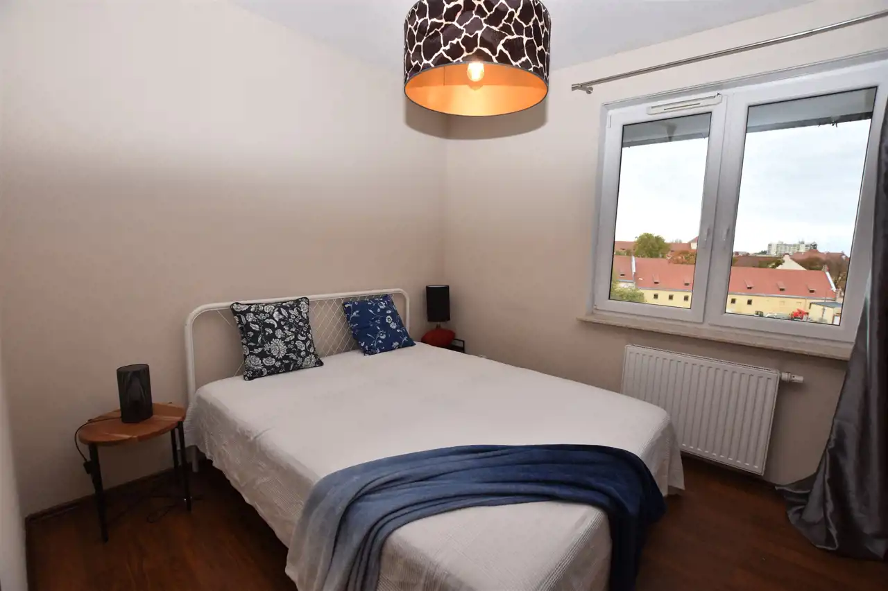 - Dwie niezależne sypialnie (9 i 8 m2) – doskonałe dla rodziny, pary lub pod gabinet