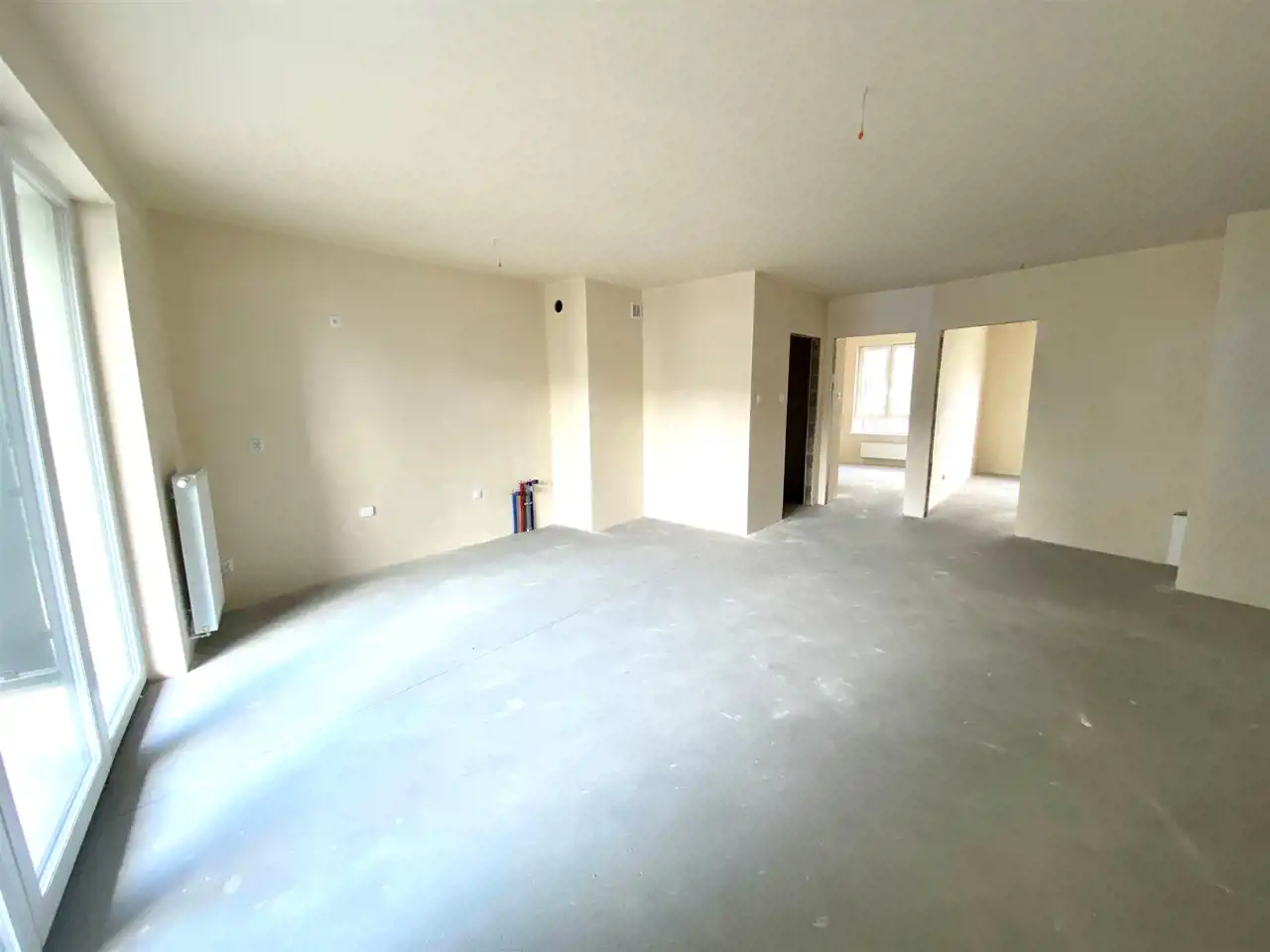 Stan mieszkania: deweloperski (na ścianach tyn maszynowo gipsowy, okna PCV, na tarasie płytki)