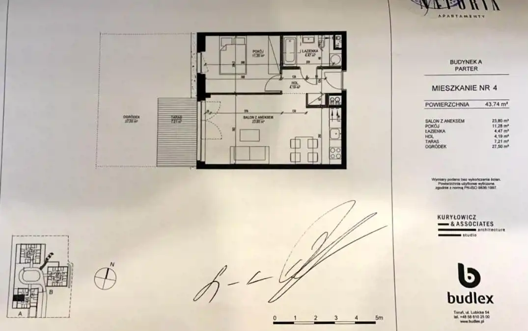 Zapraszam do zapoznania się z ofertą zakupu pięknego dwupokojowego mieszkania o powierzchni 44,04 m2 z dużym ogródkiem 27,5 m2 zlokalizowanego na Osiedlu Jar Naturia przy ul. Grasera. Mieszkanie usytuowane jest na parterze w trzypiętrowym apartamentowcu z windą, rok budowy 2020, mieszkanie użytkowane przez 1 właściciela od 2024 roku. Mieszkanie dwustronne południe-zachód, w pełni rozkładowe.