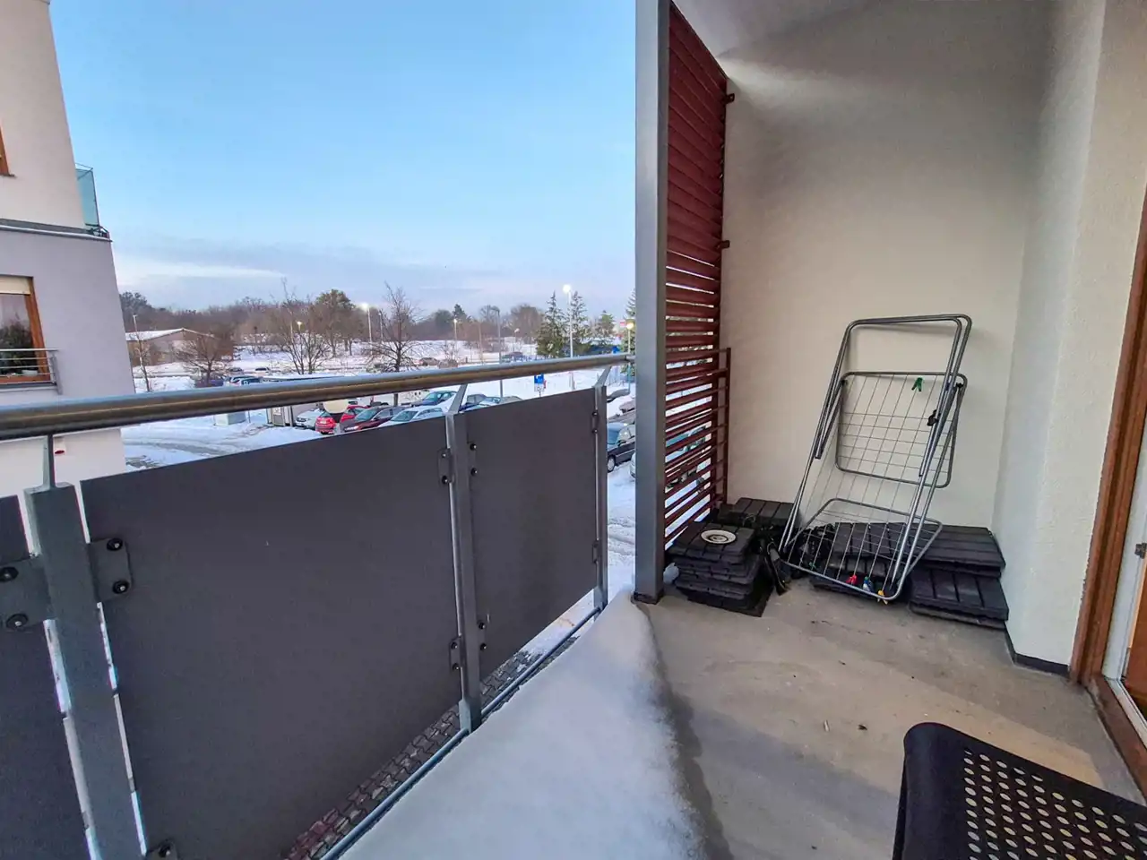 Nowoczesny blok z własną kotłownią i panelami solarnymi, co zapewnia niższe opłaty i komfort przez cały rok.