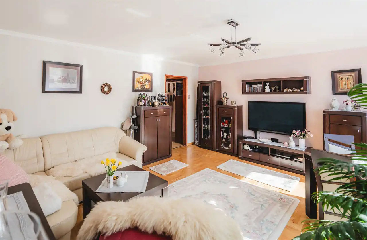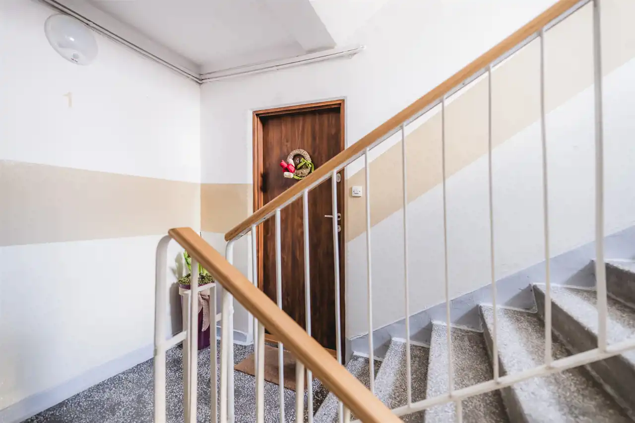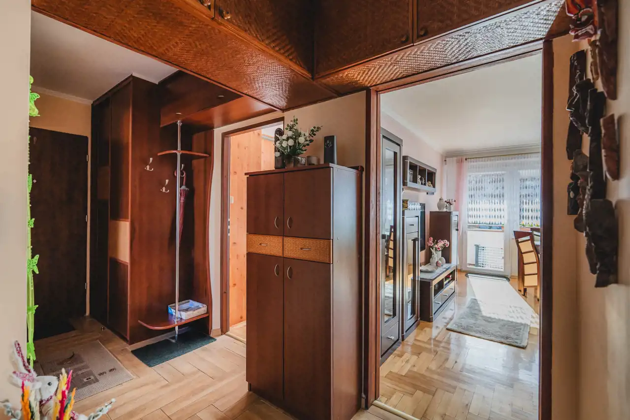 Powierzchnia mieszkania to prawie 73m , usytuowane na pierwszym pietrze w niskim bloku.