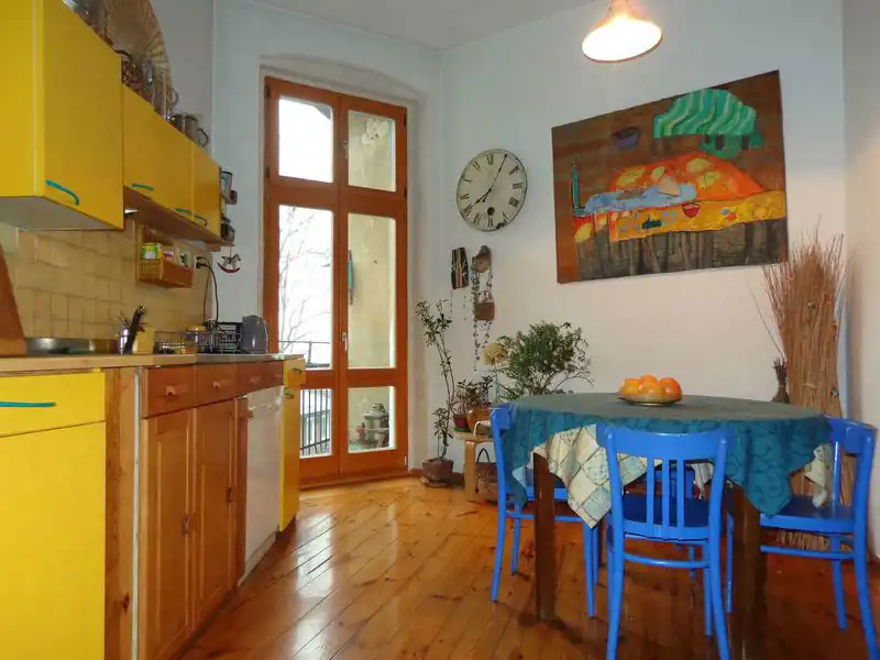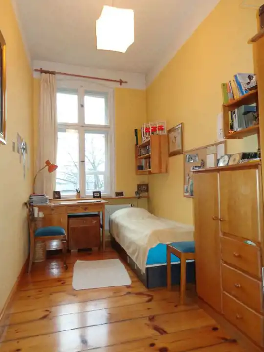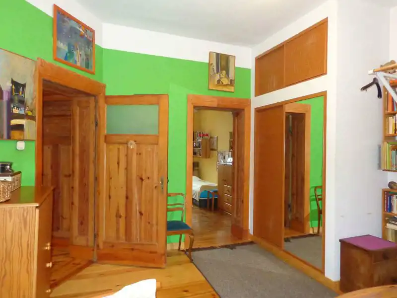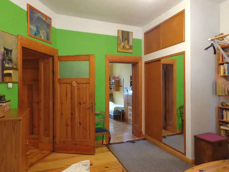 W każdym pokoju, kuchni oraz w przedpokoju oryginalna drewniana podłoga, w salonie parkiet dębowy. Drewniane ościeżnice. Na ścianach tynki.
