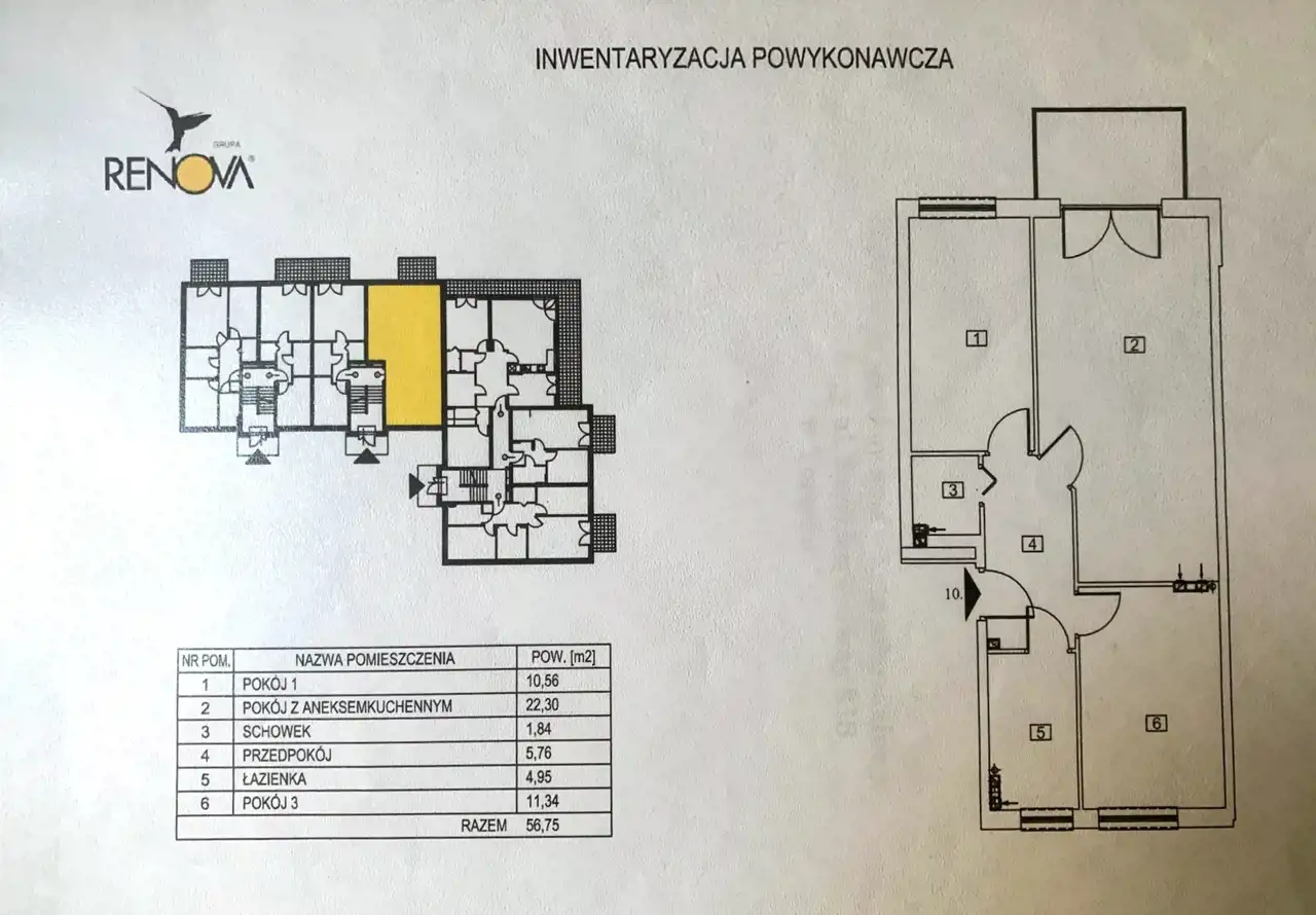 - Charakterystyka mieszkania 56.75 m2, 3 pokoje
