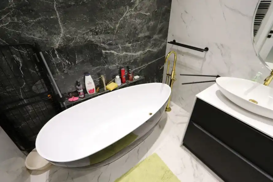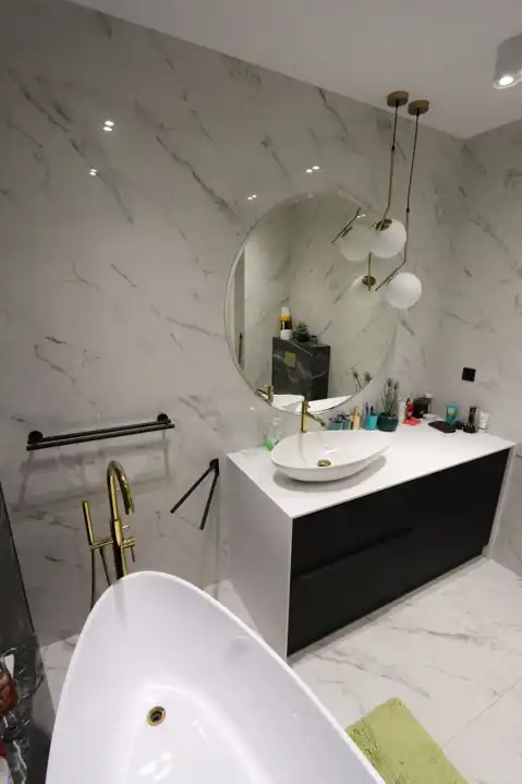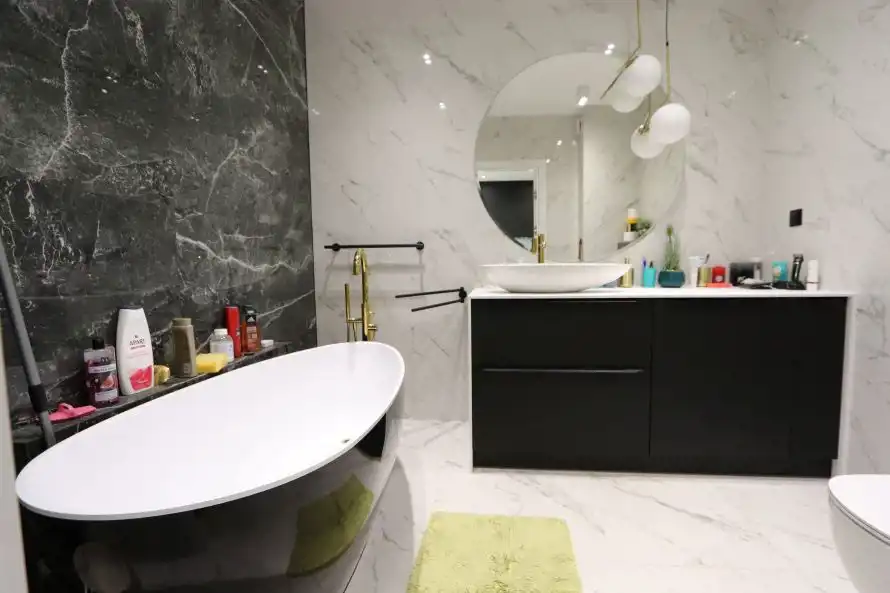 Całość uzupełnia wysokiej klasy armatura łazienkowa i sanitarna.